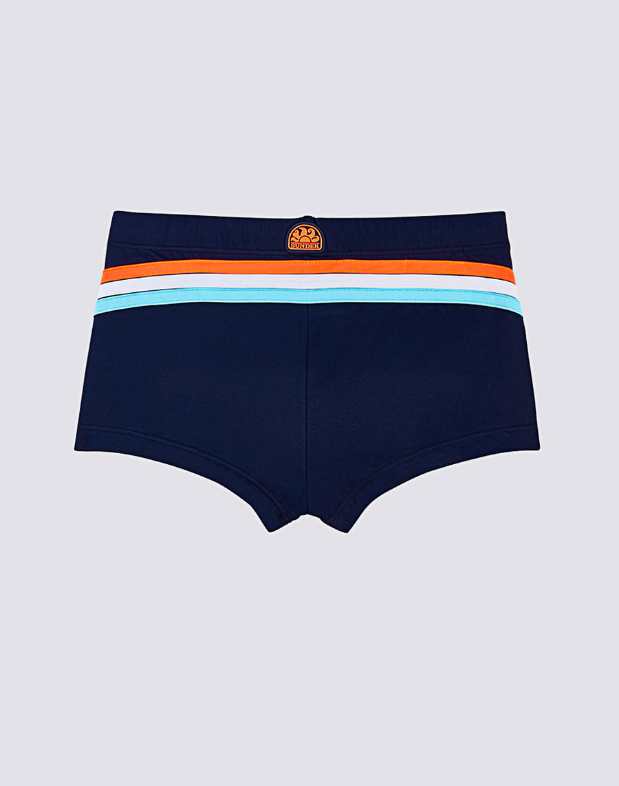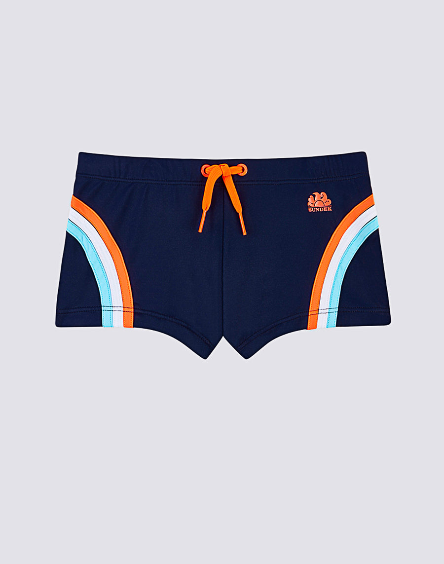 Thanks to their ECONYL® regenerated nylon fabric, these colourful boys' swim boxer put the environment first. With a comfortable elasticated waistband and an adjustable drawstring, this swimsuit is perfect for playing and swimming.