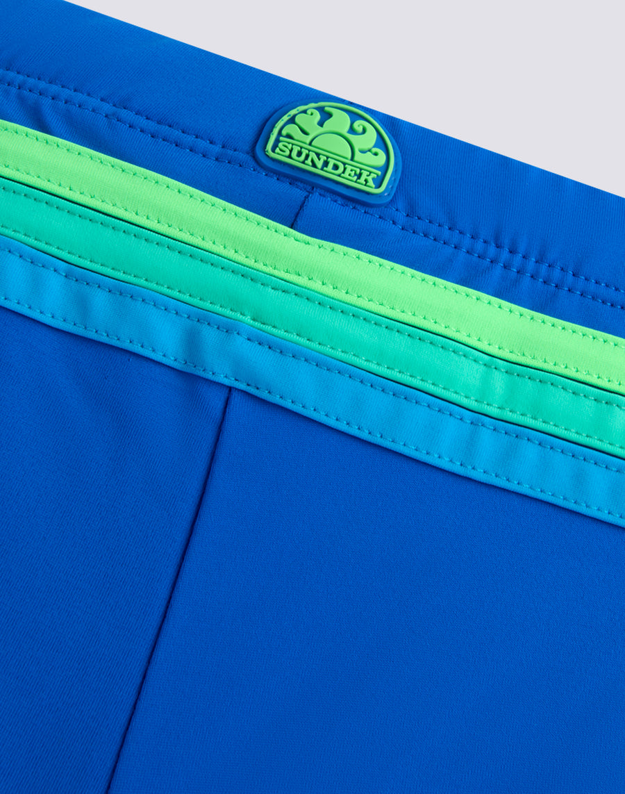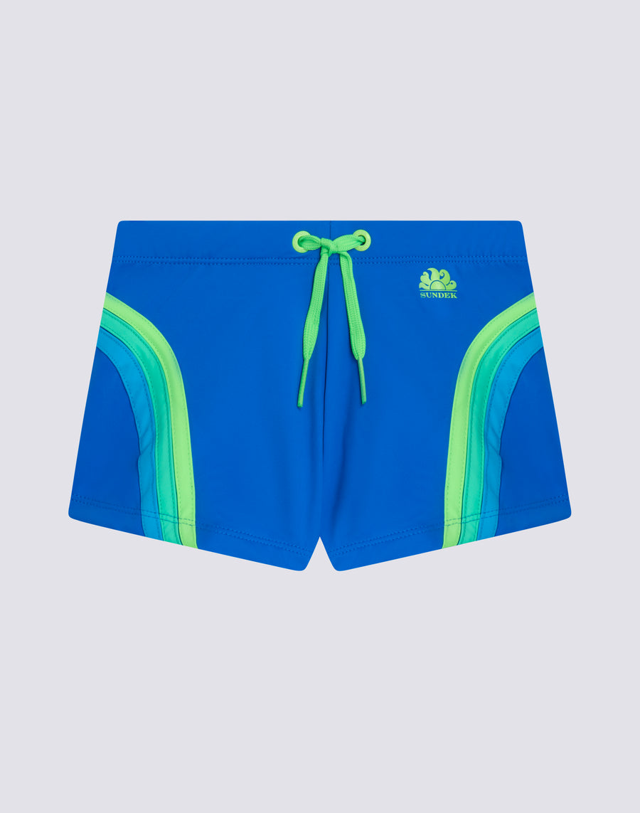 The children's swim shorts that focus entirely on color and don't forget the environment, because they are made of ECONYL® regenerated nylon. Comfortable thanks to the elastic waist and adjustable strap, it is the costume that your child can easily wear to play and bathe.