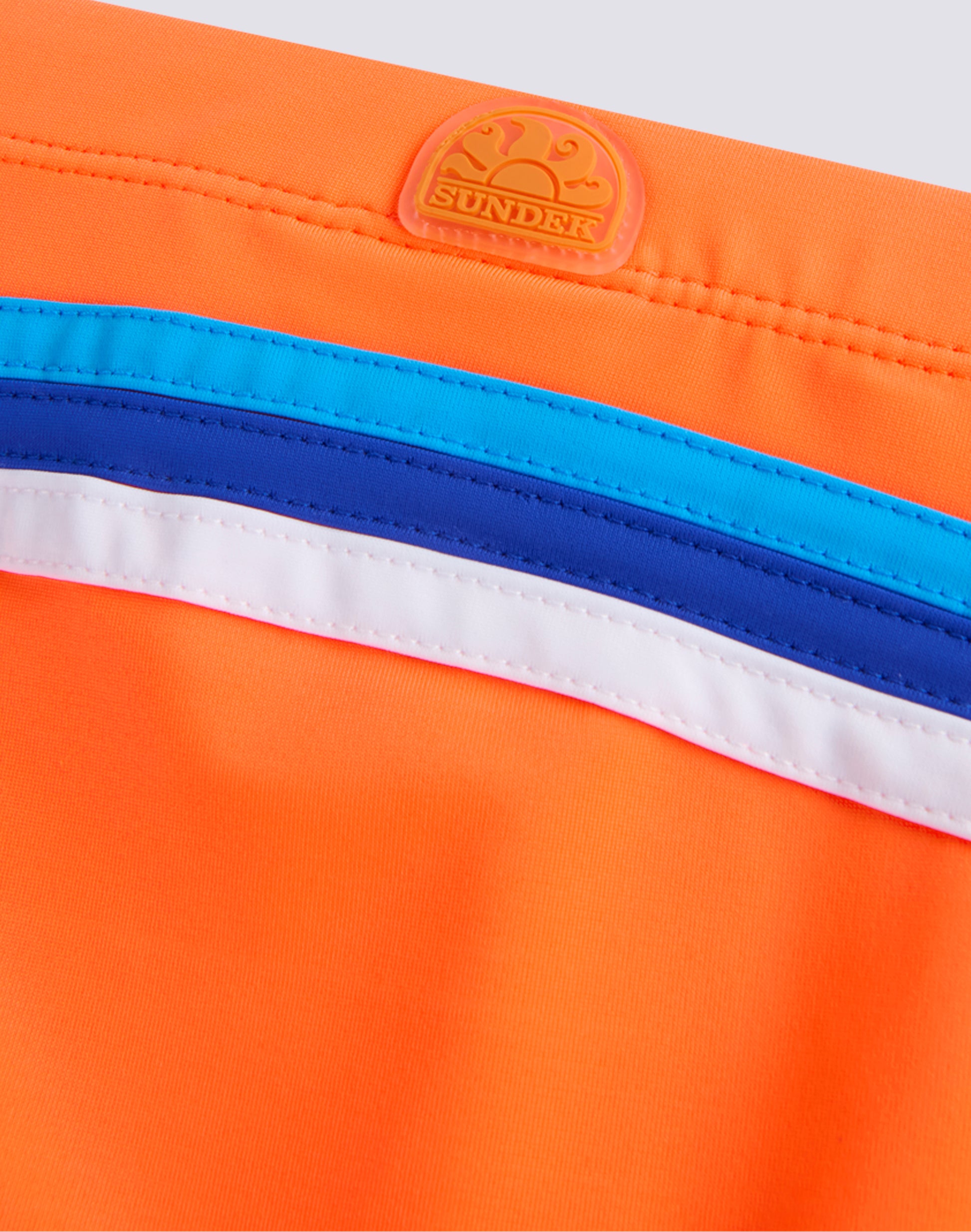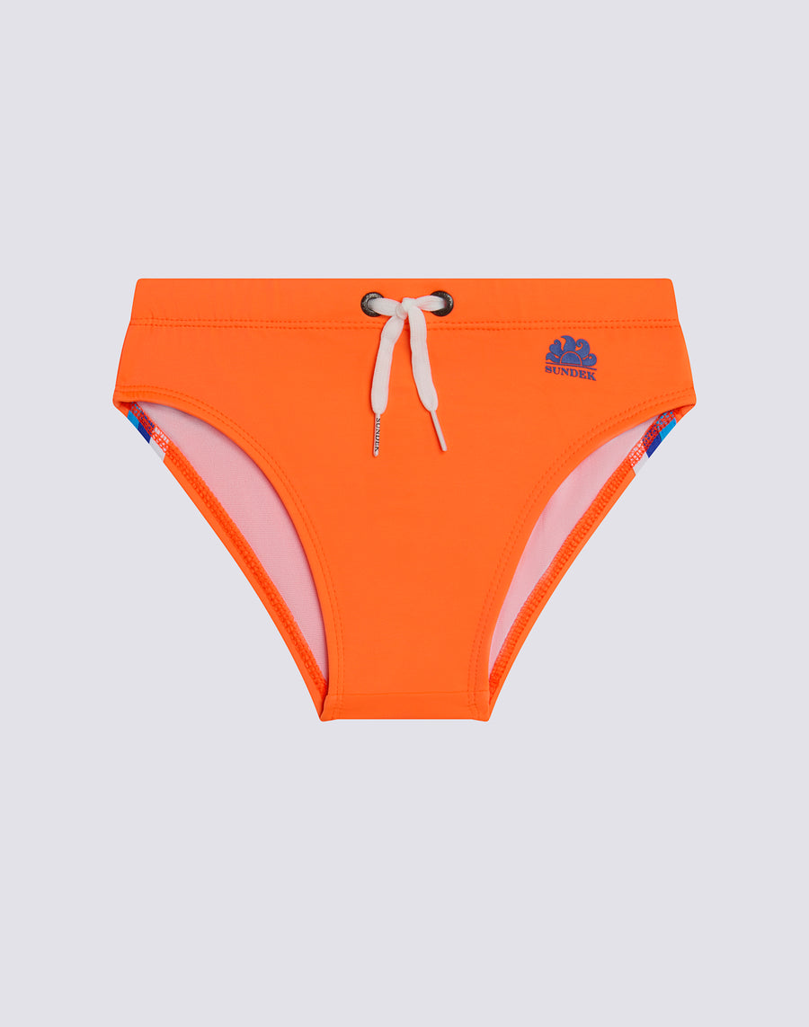Boys' swim briefs with rainbow details on the back, drawstring and elastic waist.