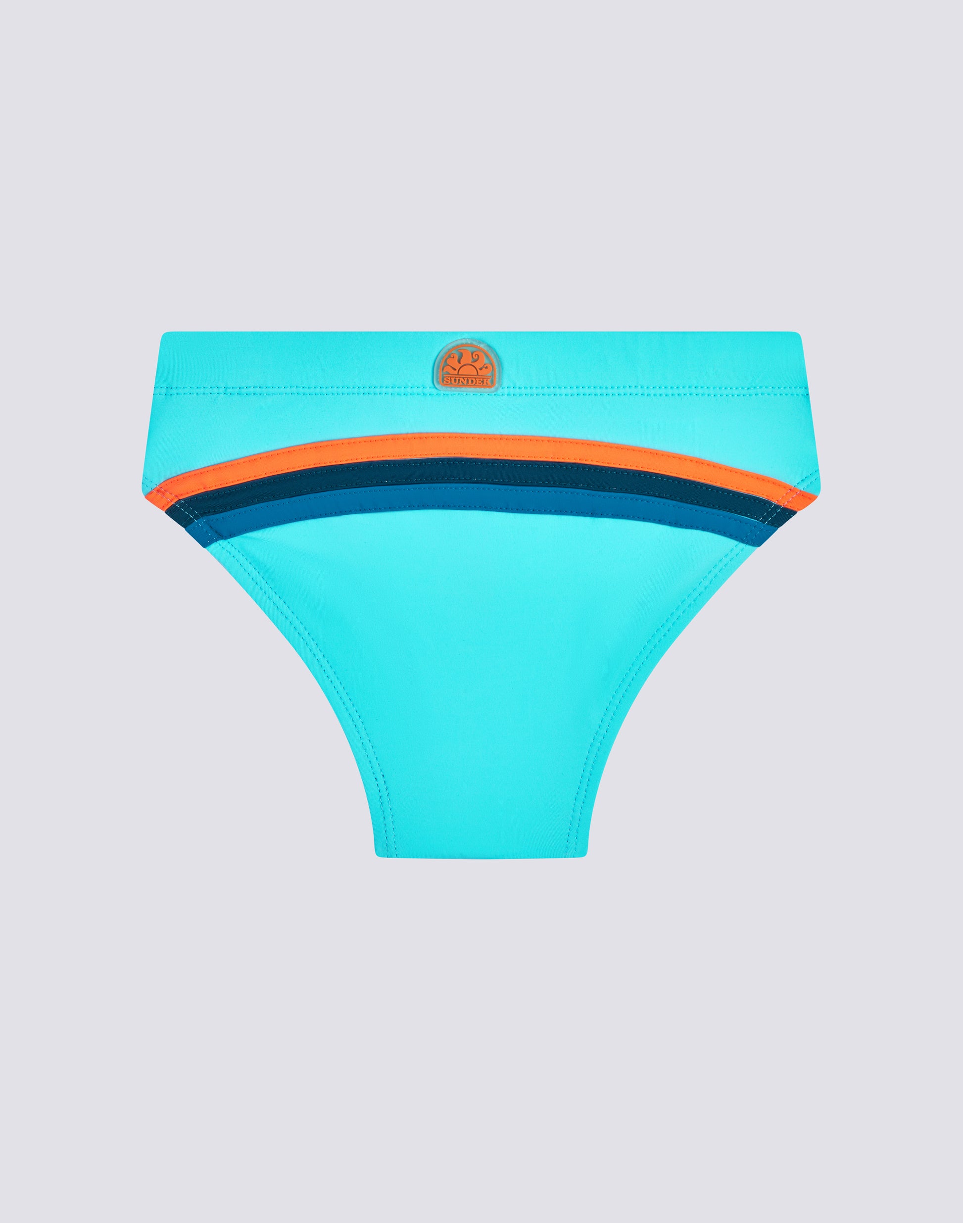 Children's swim briefs with rainbow detailing on the back, drawstring and elasticated waist.