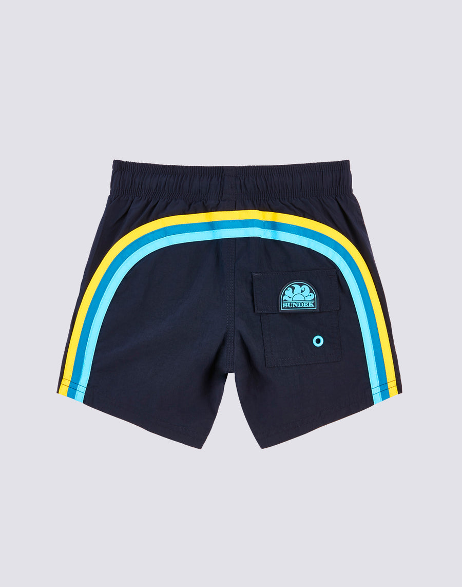 Intense color and hyper-comfortable quick-drying fabric for these baby boy beach shorts. A model that will accompany your child in his many activities on vacation, perfect for moving and playing in complete freedom. is made of our historic nylon-taffeta fabric and constructed with three-needle stitching that makes it durable over time. To pack year after year.
