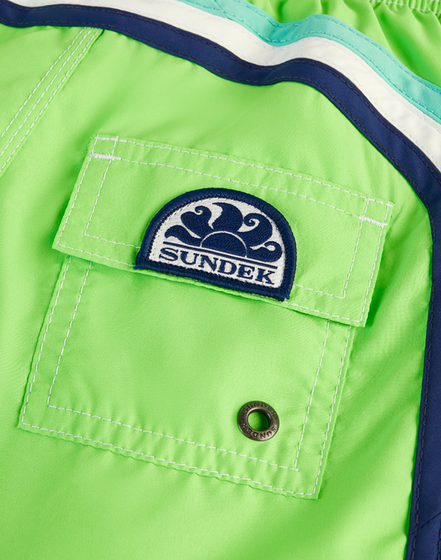 It's fun, bright and loves the environment: the rainbow children's costume is made of REPREVE® polyester made from recycled plastic bottles. Sustainability and performance go hand in hand because it is a lightweight fabric that dries quickly. Furthermore, the three-needle stitching that finishes the model guarantees long-lasting durability. To put in your suitcase immediately.