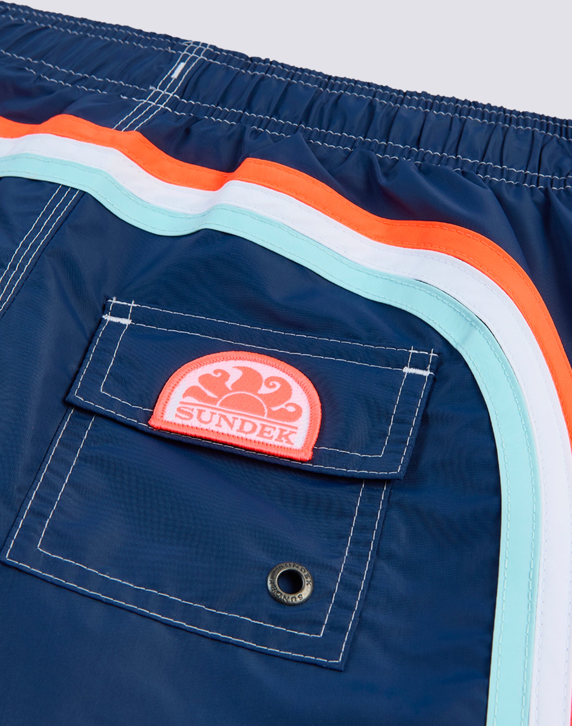 These boys' swim shorts feature intense colours and a super-comfortable, quick-drying fabric. A style that will accompany your little boy in all his holiday activities, perfect for moving around and playing in complete freedom. Made from our classic nylon taffeta fabric and constructed with three-needle stitching for durability. Pack them in your suitcase year after year.