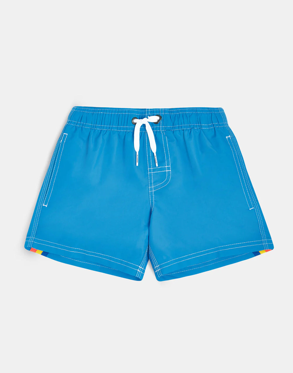 These boys' swim shorts feature intense colours and a super-comfortable, quick-drying fabric. A style that will accompany your little boy in all his holiday activities, perfect for moving around and playing in complete freedom. Made from our classic nylon taffeta fabric and constructed with three-needle stitching for durability. Pack them in your suitcase year after year.
