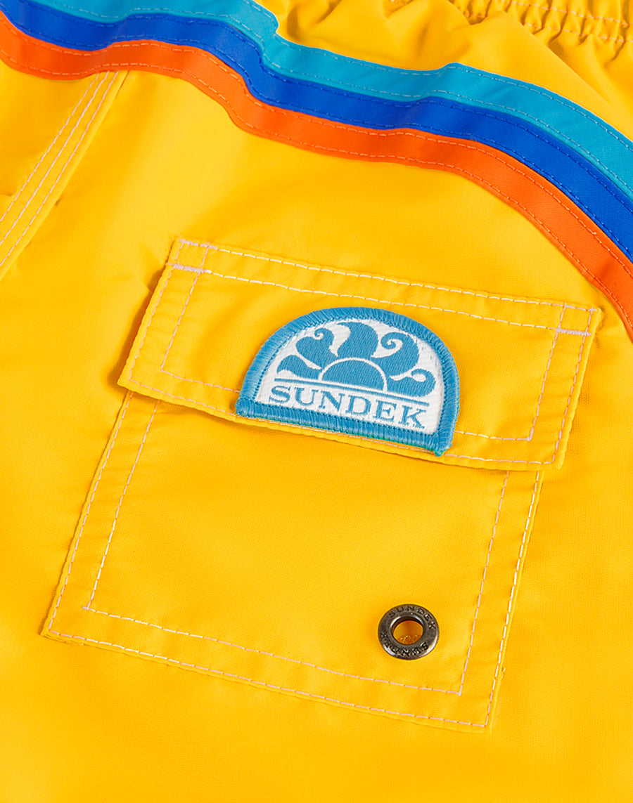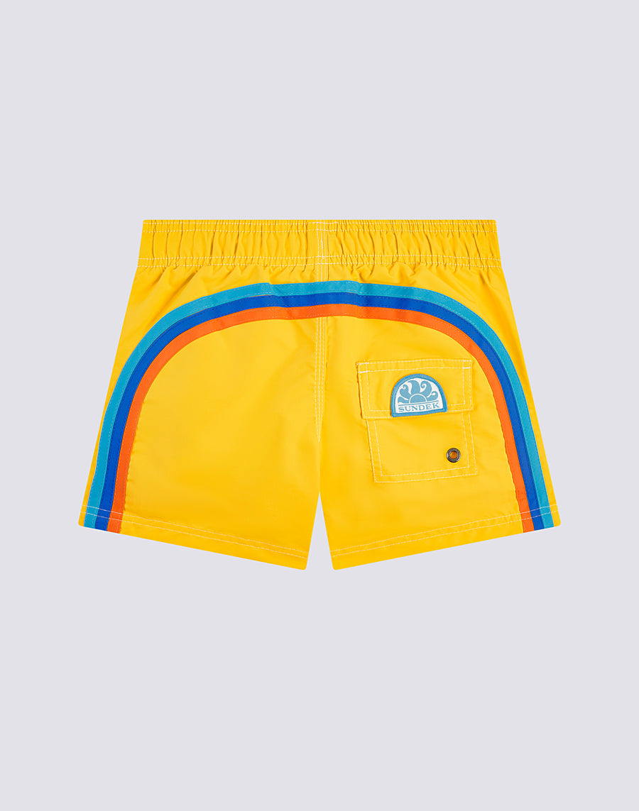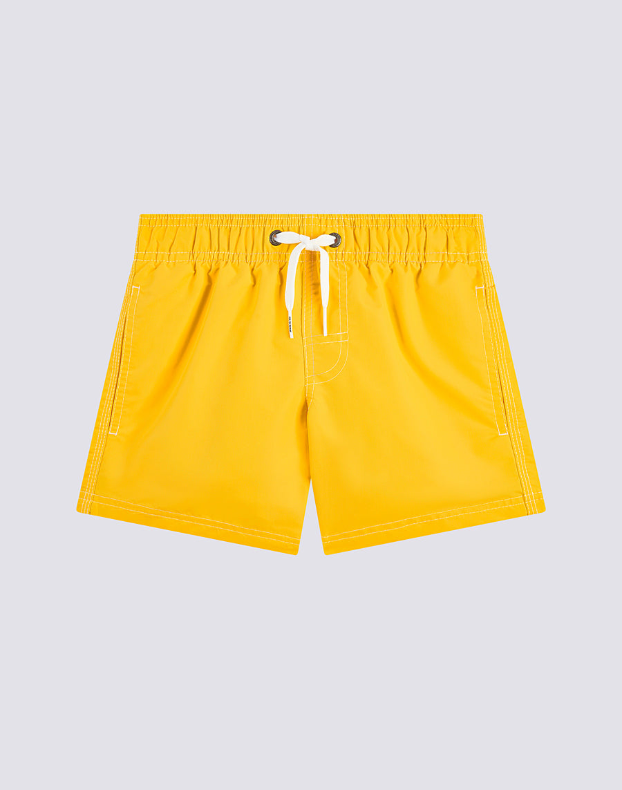 Intense color and hyper-comfortable, quick-drying fabric for these boys' swim shorts. A model that will accompany your child in his thousand holiday activities, perfect for moving and playing in complete freedom. it's made from our heritage nylon-taffeta fabric and constructed with three-needle stitching that makes it durable over time. To pack in your suitcase, year after year.