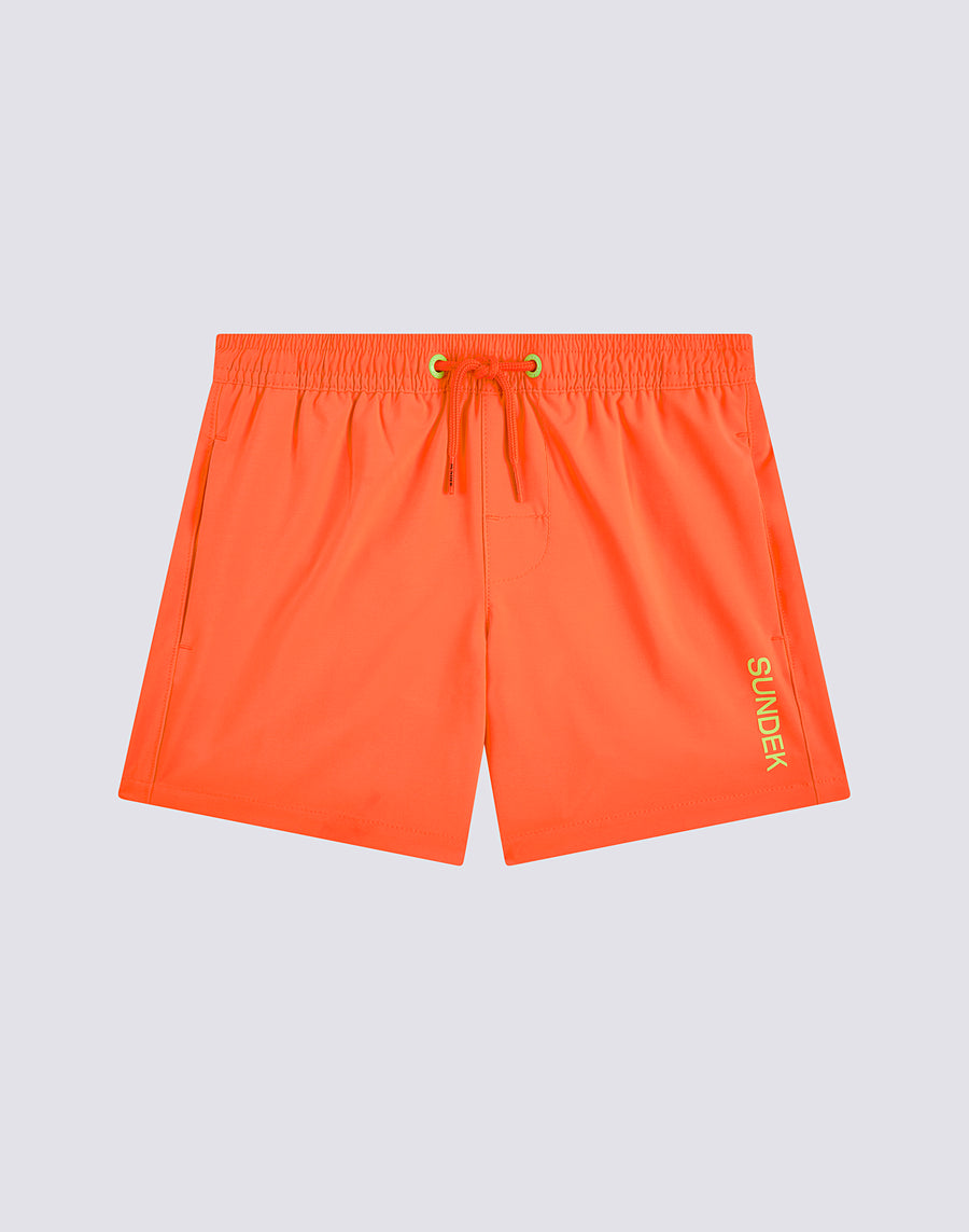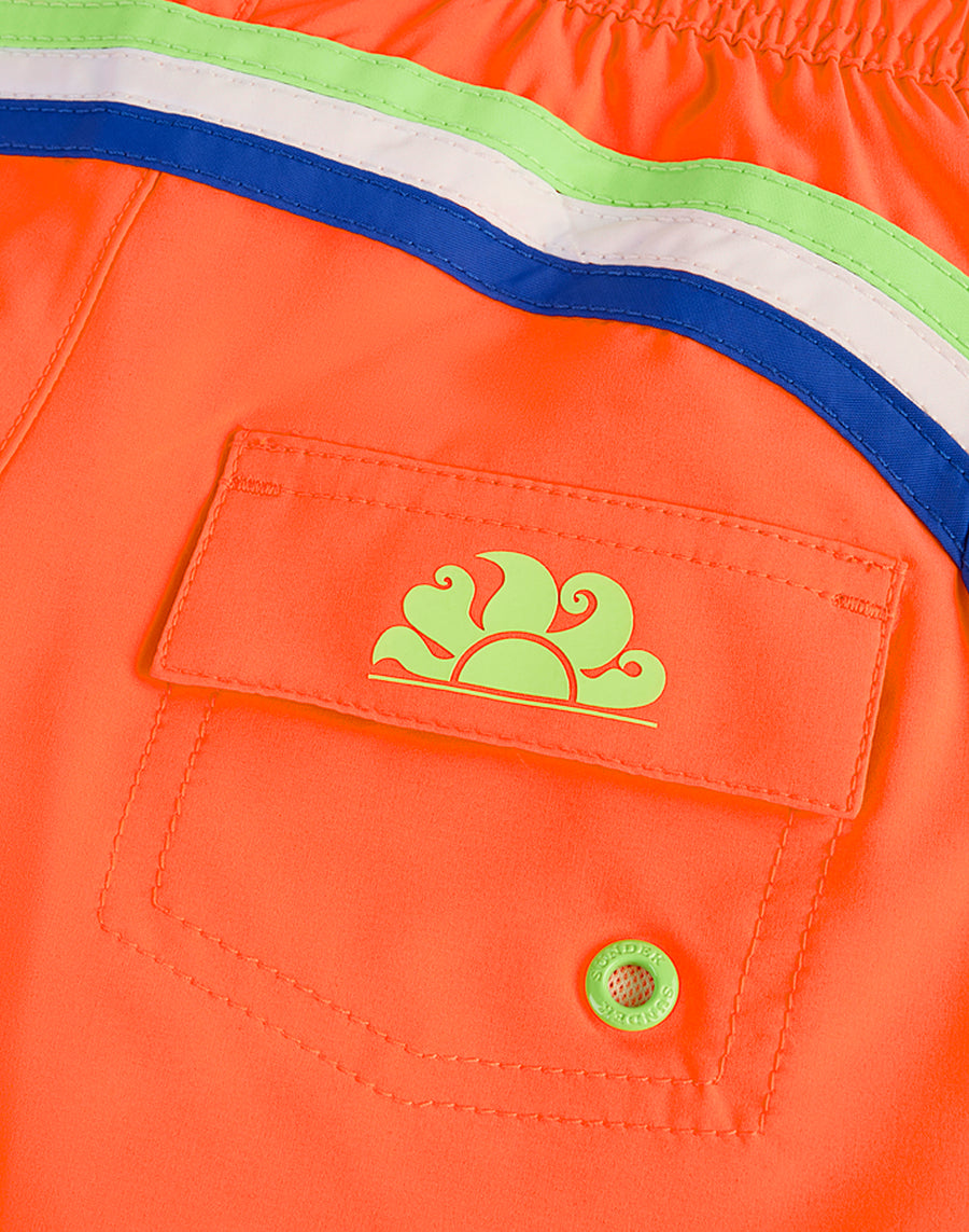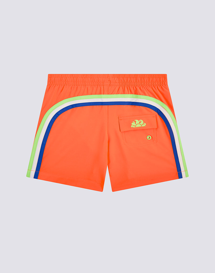 Intense color and hyper-comfortable, quick-drying fabric for these boys' swim shorts. A model that will accompany your child in his thousand holiday activities, perfect for moving and playing in complete freedom. Lightweight, resistant, dries very quickly and is made of 4 Way Stretch fabric. It has our classic three-needle stitching that increases durability and our iconic rainbow on the back.