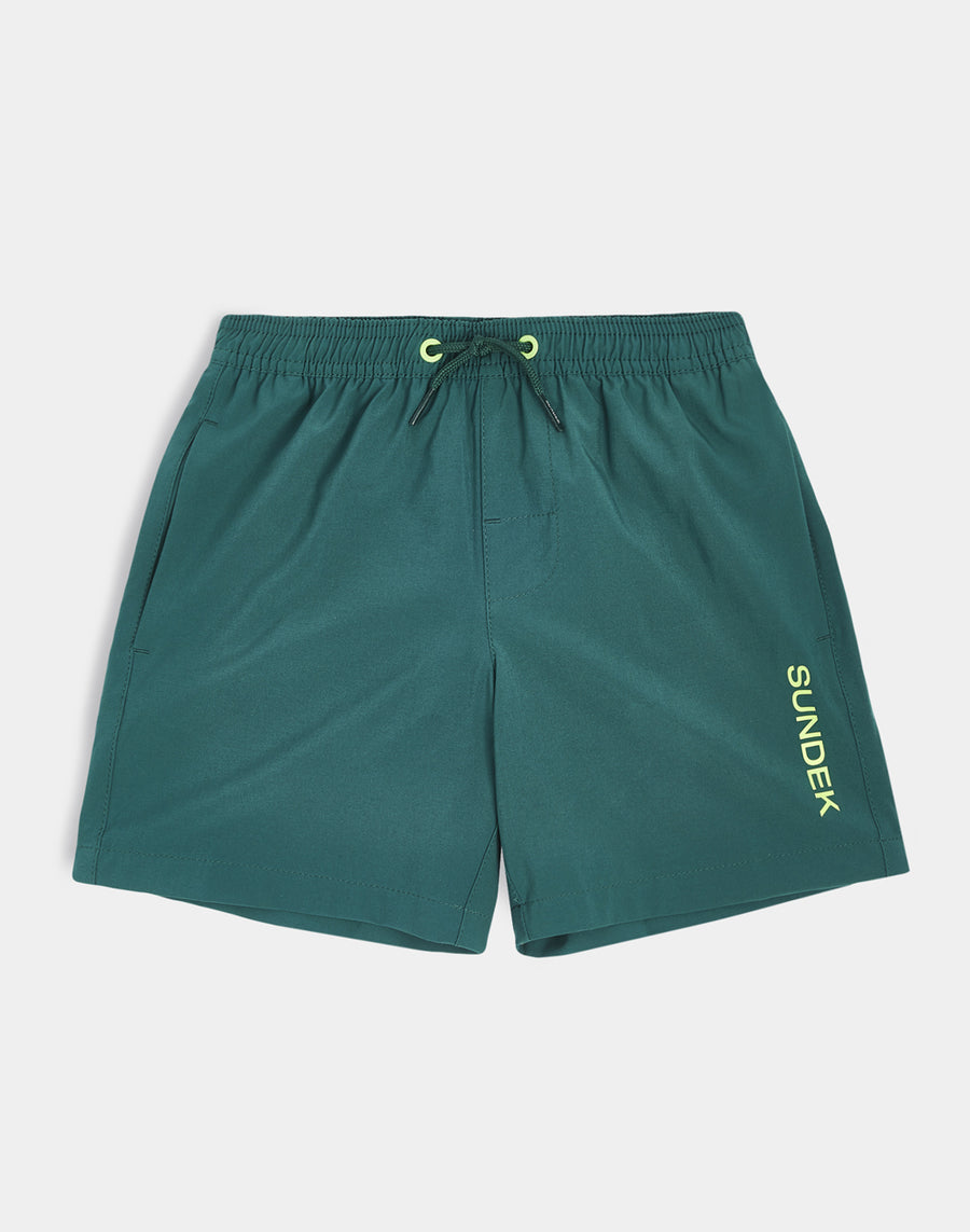 Intense color and ultra-comfortable, quick-drying fabric for these boy's beach shorts. A model that will accompany your child in his many activities on holiday, perfect for moving and playing freely. Lightweight, resistant, dries very quickly and is made of 4 Way Stretch fabric. It has our classic tri-needle stitching for added durability and our iconic rainbow to the reverse.