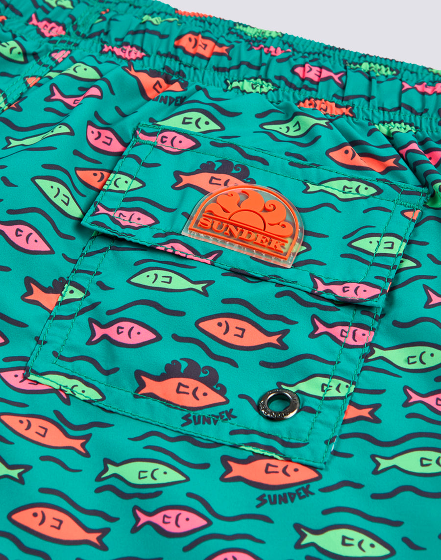 FISHBALL PRINT ELASTICATED WAIST SHORT SWIMSHORTS IN RECYCLED POLY