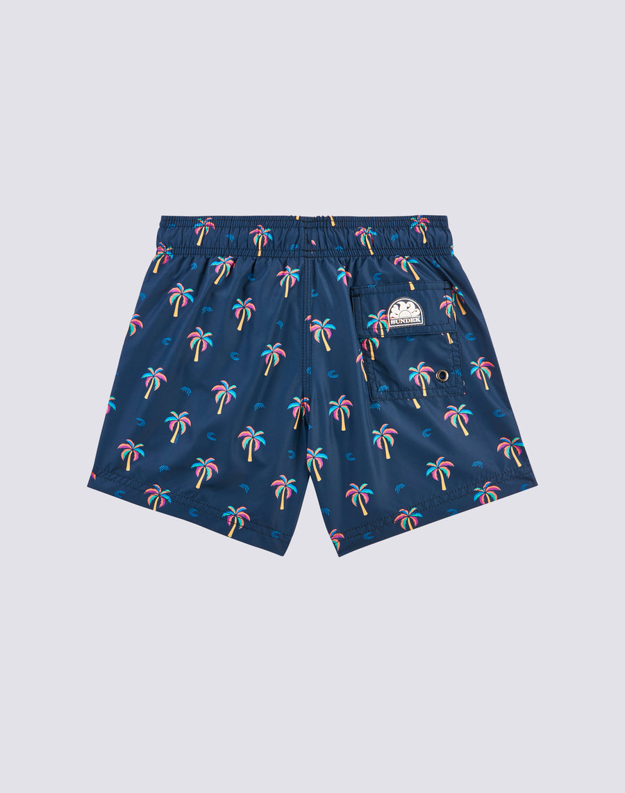 Boys' swimsuit with mini palm print, elastic waist and drawstring to adjust the fit. Play freely in the waves!