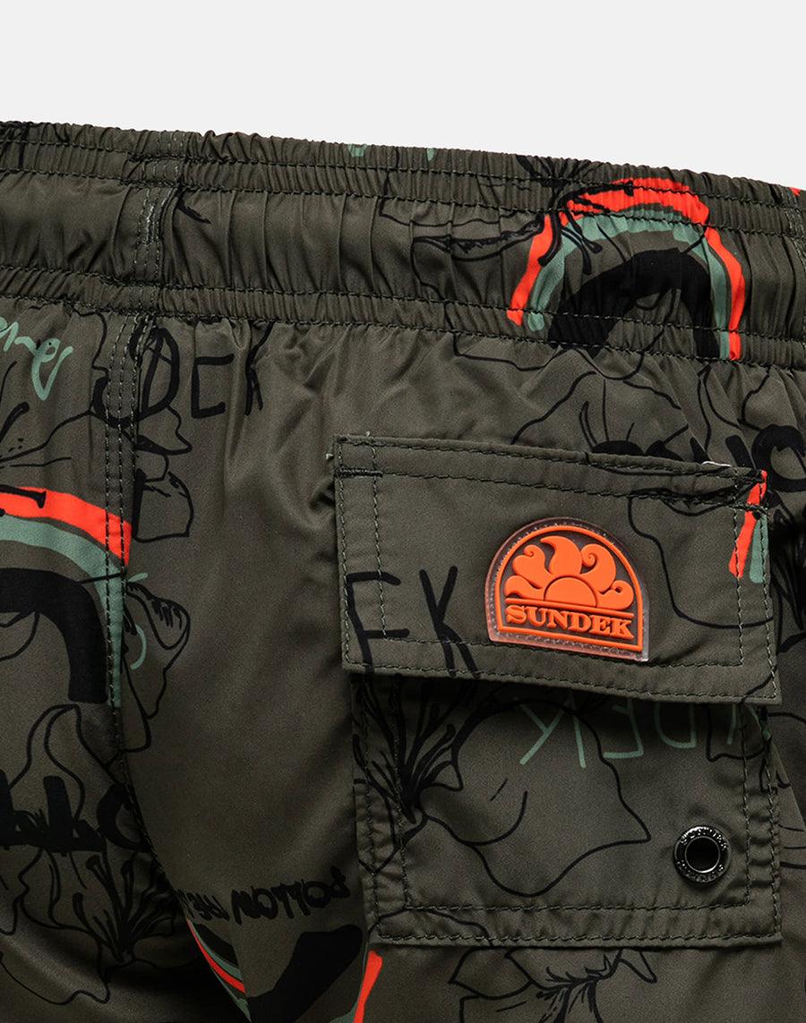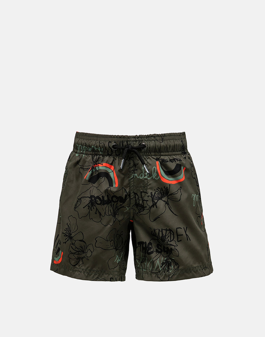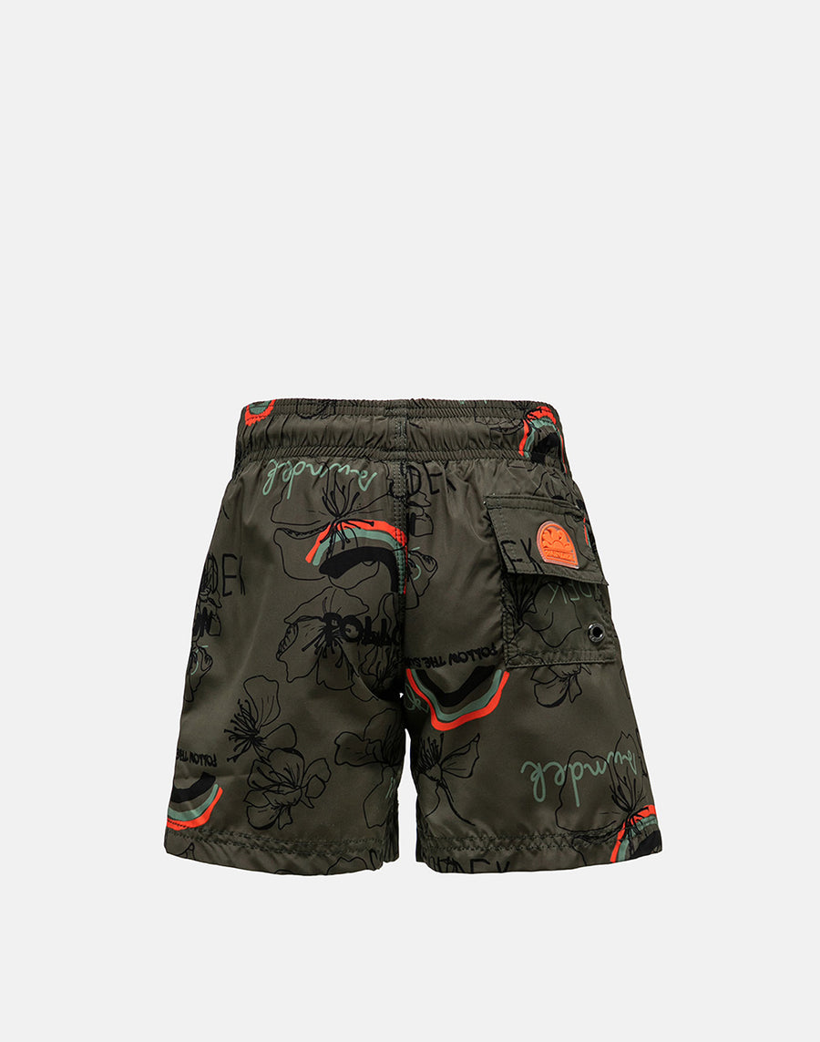 This boys' swimsuit is embellished with a floral print, which is superimposed over a childish design for a fun and original result. Easy to slip on, it is very lightweight, dries quickly, and is made from eco-friendly recycled fabric. These boys' swim sho