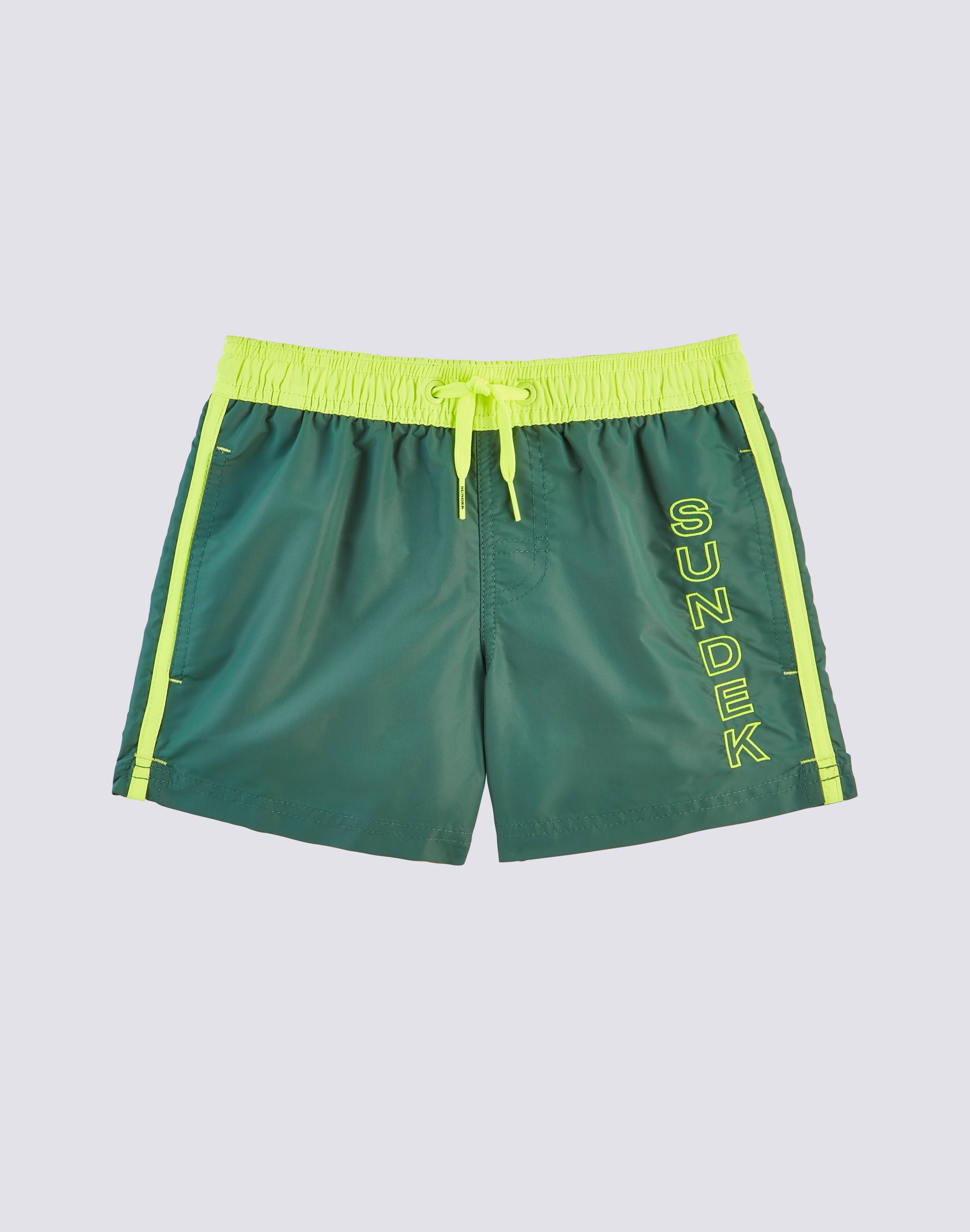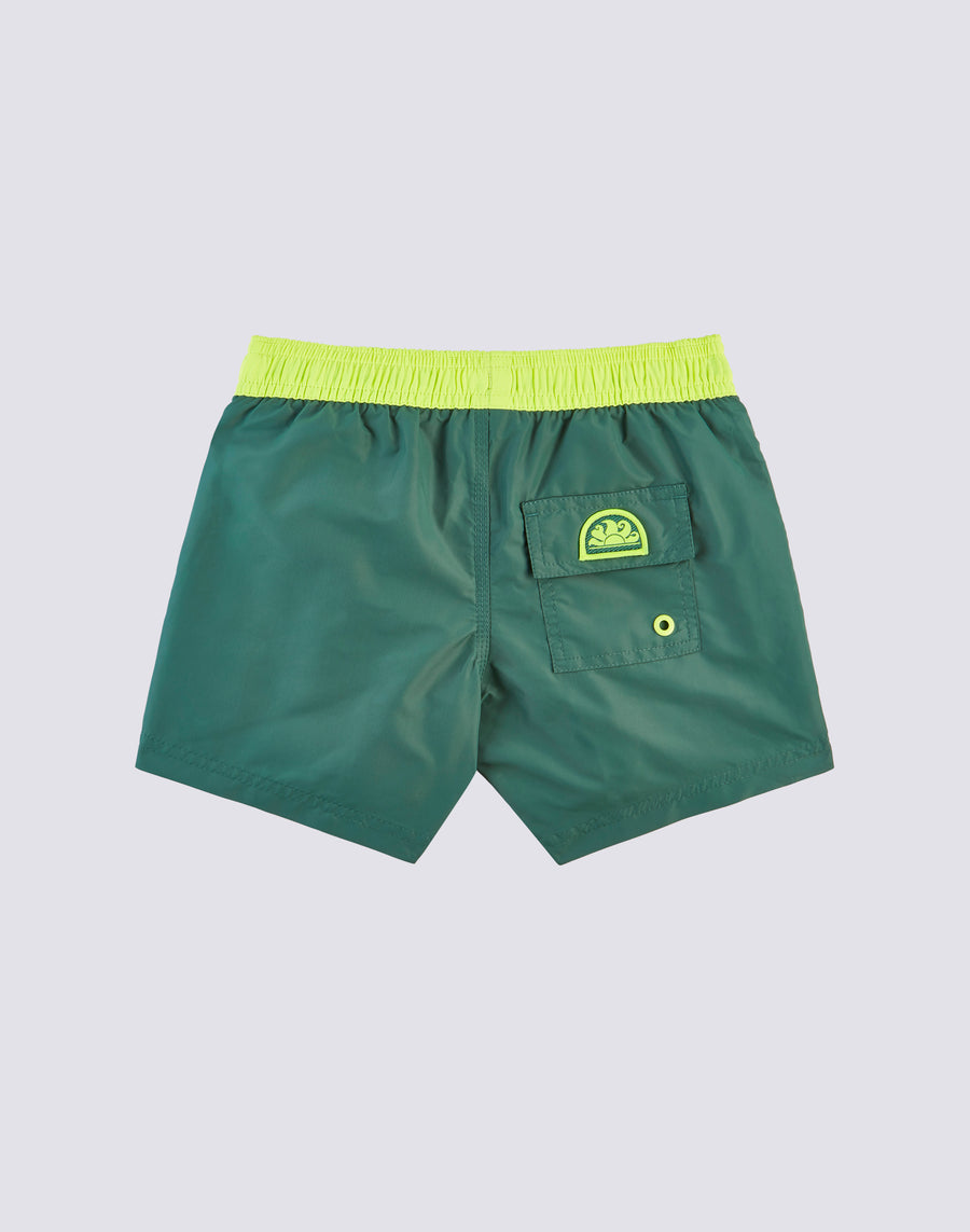 This iconic nylon taffeta swimsuit is perfect for your little one. With the Sundek logo, embroidery and a contrast trim, this swimsuit boasts an elasticated waist for optimal comfort. Furthermore, thanks to its quick dry fabric, your child will dry quickly after each swim.