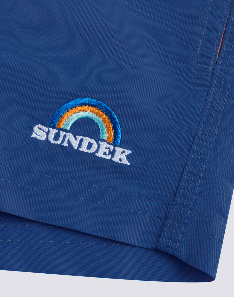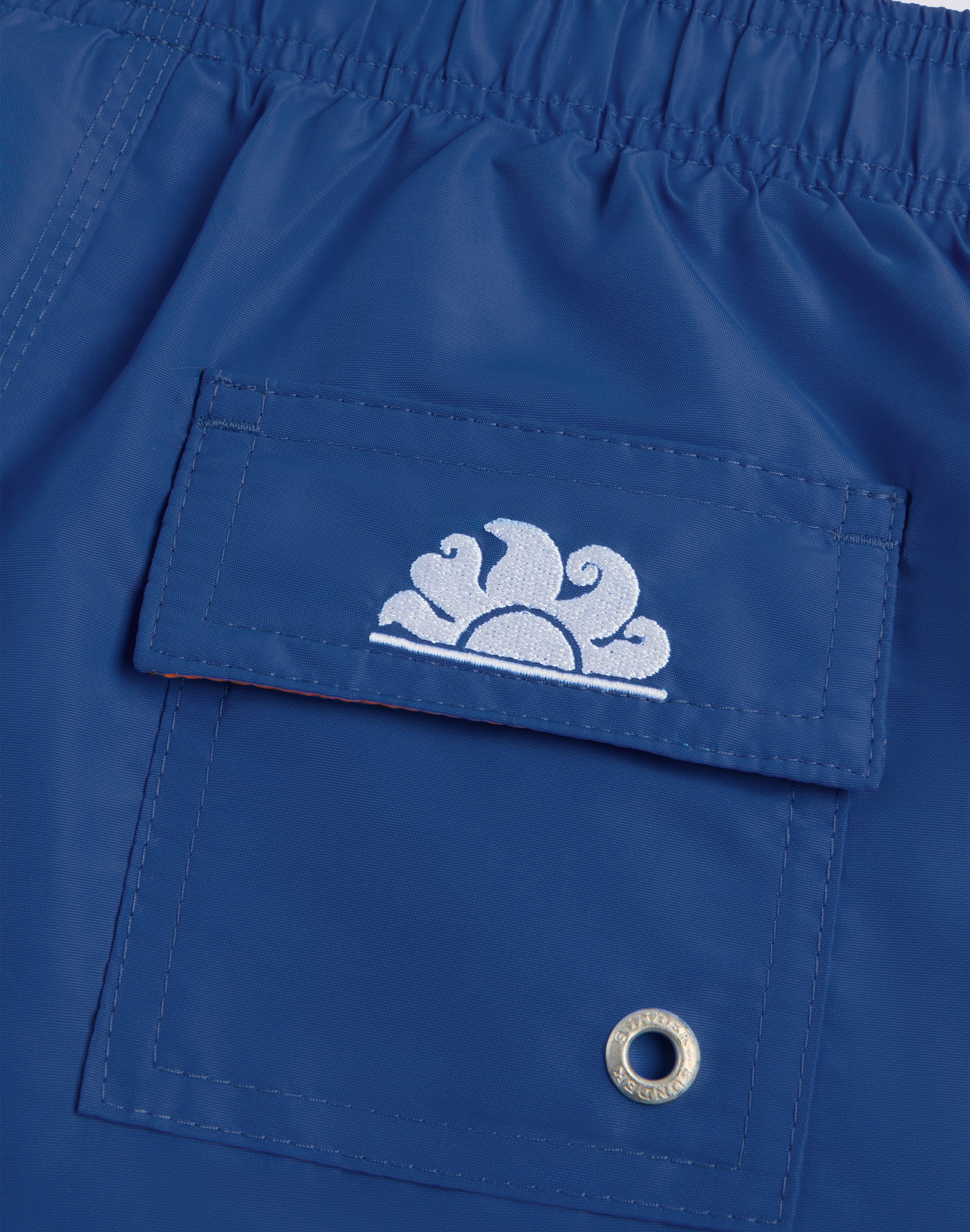 Refresh your child's beachwear wardrobe with this short shorts swimming SWIMSHORTS, perfect for days at the beach or pool. With its quick-drying fabric and contrasting inserts, this boy's swimming SWIMSHORTS guarantees an iconic look all summer long. The embroidered rainbow detail adds an extra touch of style.