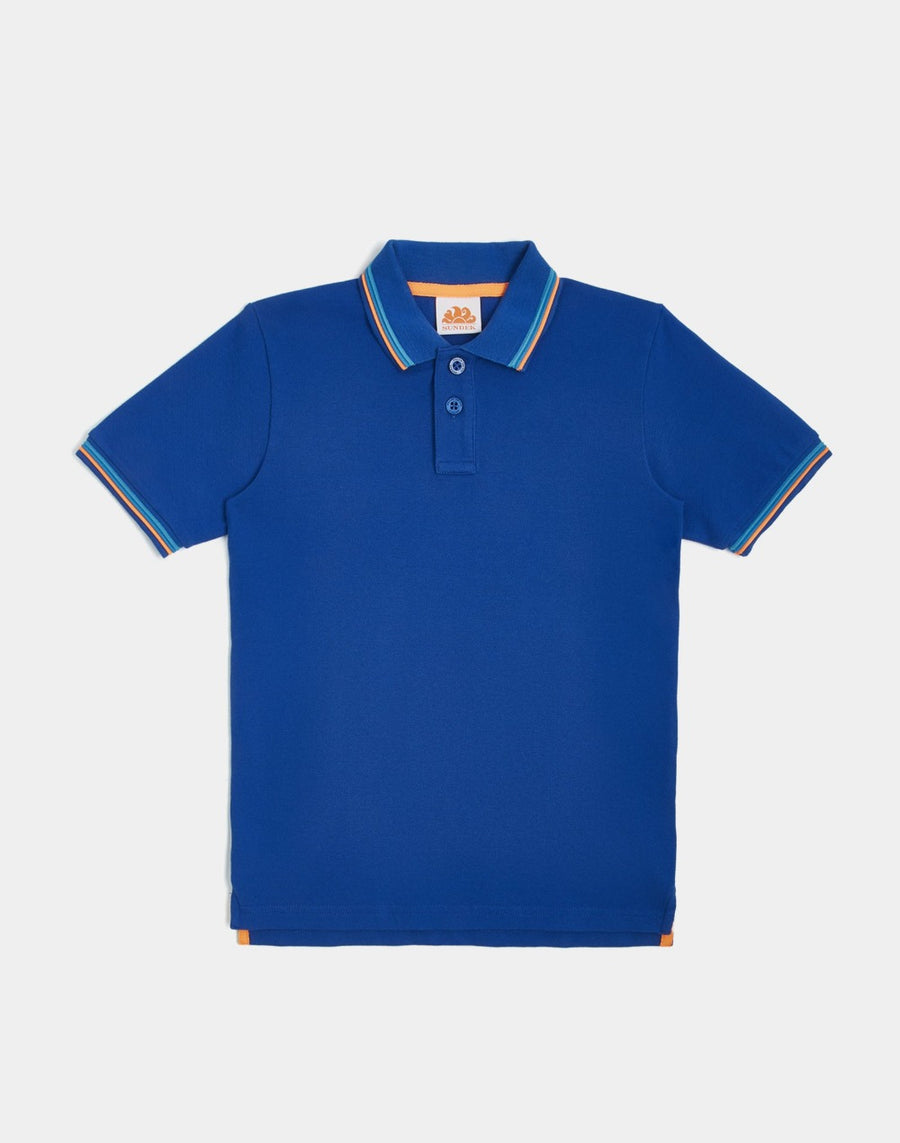 An elegant and charming polo shirt in comfortable soft cotton piqué: a must-have addition to every kid's wardrobe, it is perfect for countless occasions. Made from plain soft cotton piqué fabric, the timeless design is finished with tricolour trim for an extra touch of character.