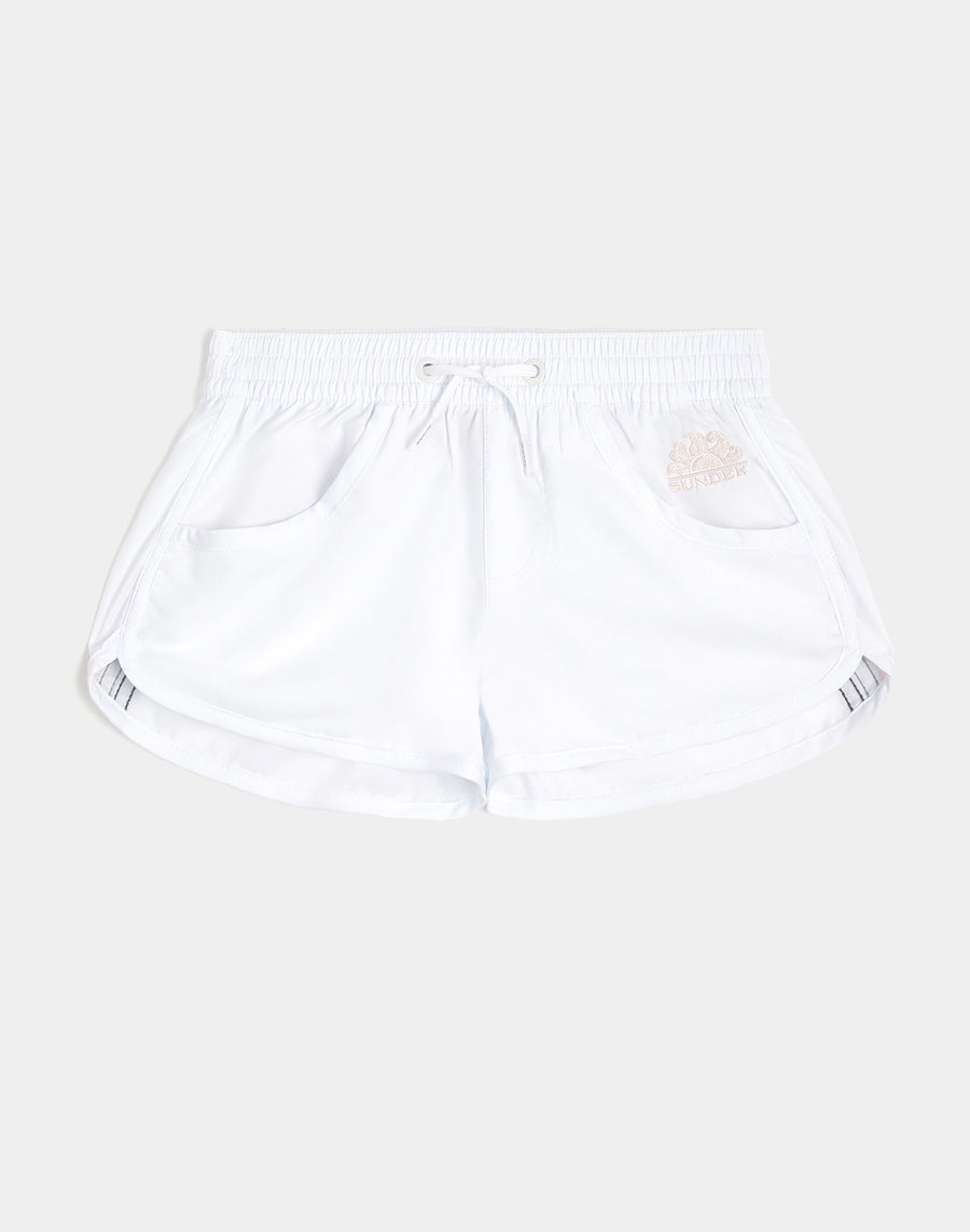 The mini version of the women's Margate swimsuit. Lightweight and comfortable, the shorts have a low elasticated waist with an adjustable drawstring. They can also be worn over a one-piece swimsuit or bikini bottoms.