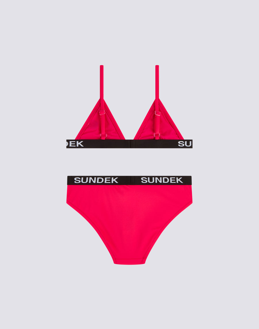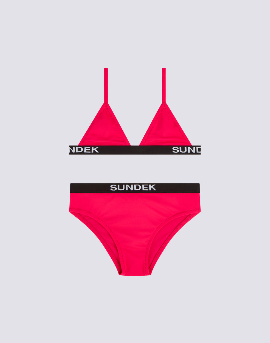 GIRLS' BIKINI WITH TRIANGLE TOP AND FIXED BOTTOMS WITH ELASTIC LOGO