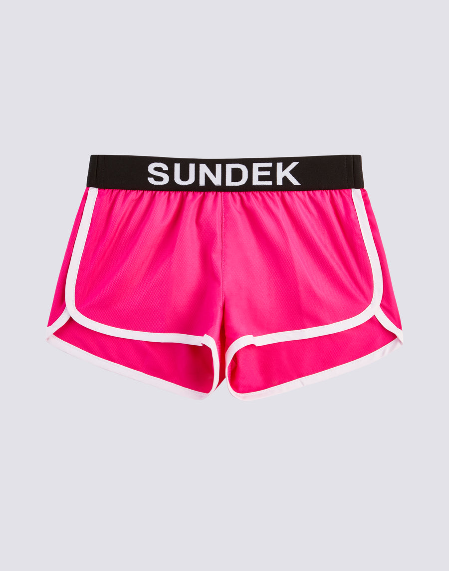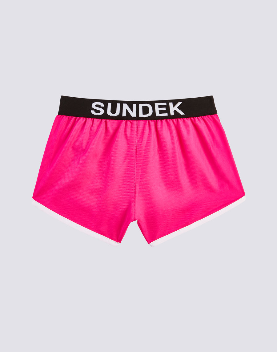 A lightweight shorts with Sundek logo perfect to wear over your swimsuit. Easy to put on, with a light and comfortable fabric, they will accompany your little girl from the beach to summer games. Regular fit. Length 16 cm (size 6) measured on the outside.