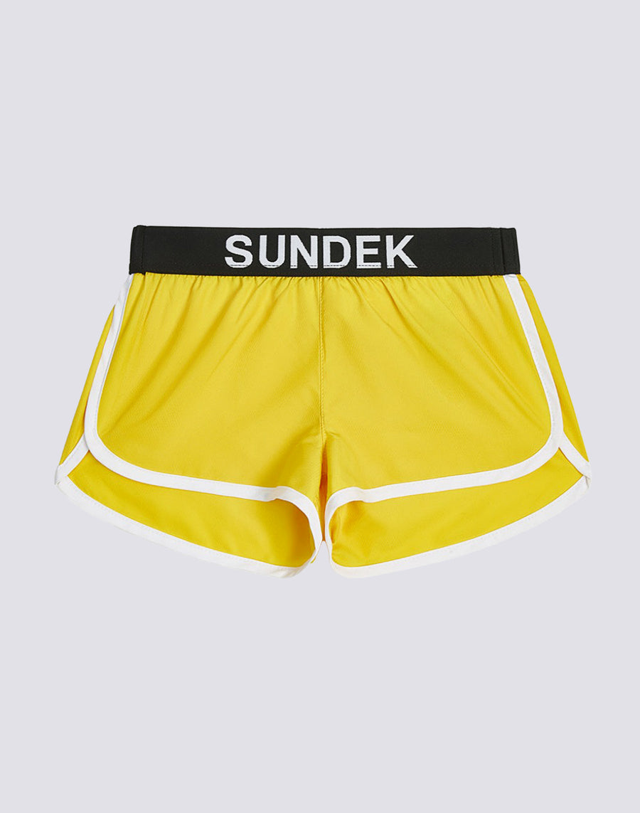 Lightweight shorts finished with the Sundek logo, perfect for layering over a swimsuit. Made from lightweight and comfortable fabric, they are very easy to put on. Your little girl will love to wear them on the beach or for a whole range of summer games. Regular fit. Length 16 cm (size 6) measured on the outside.