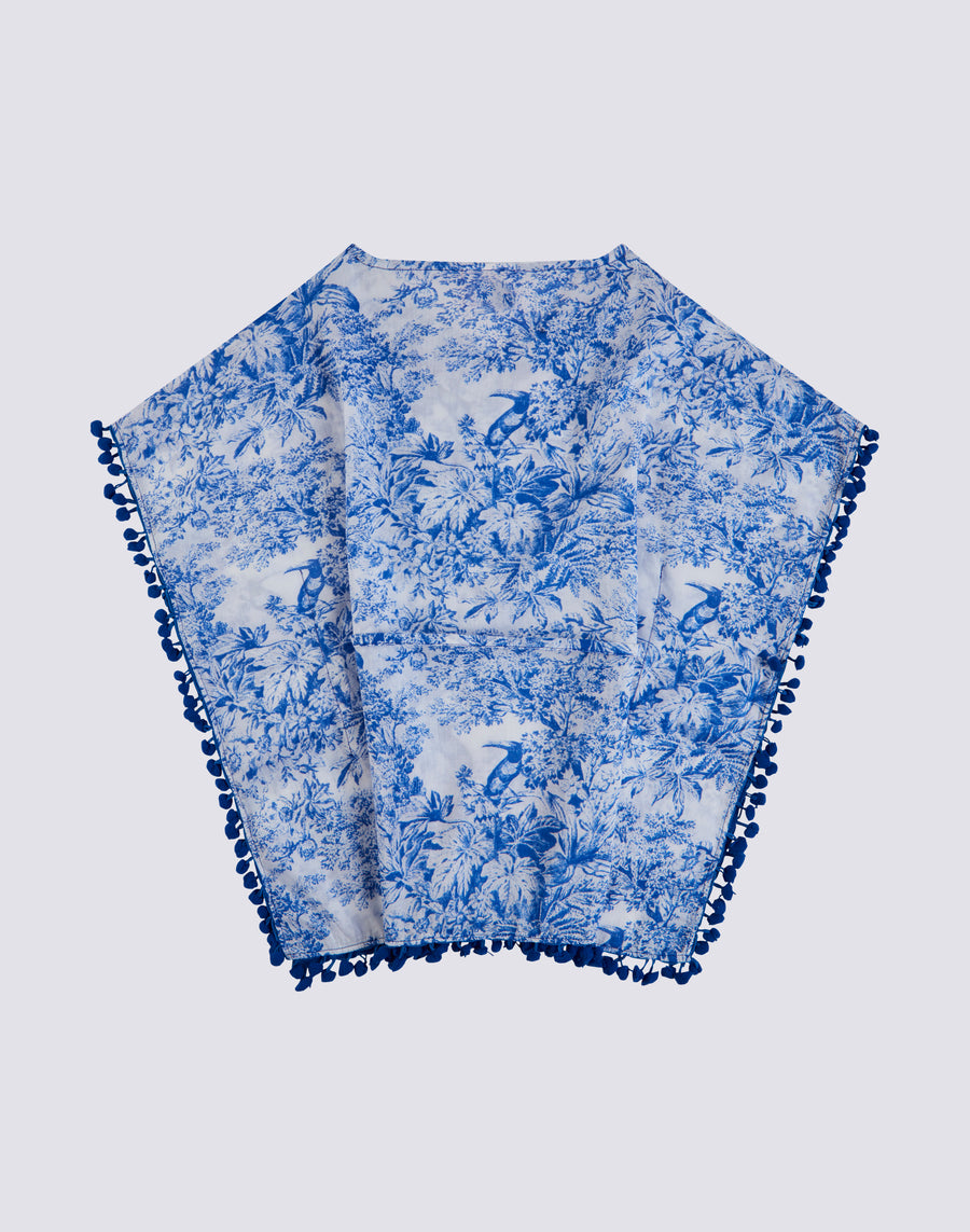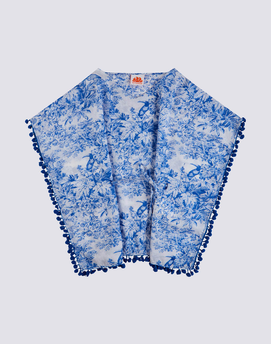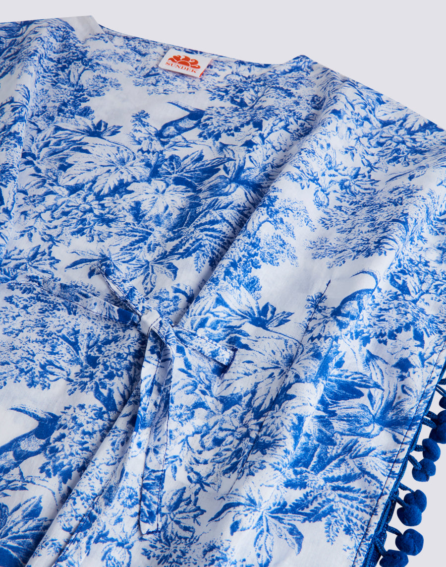 This girl's kaftan is perfect for a refined and elegant look. Printed with toile de jouy pattern, it will make you feel romantic and fashionable. Ideal for special occasions or simply for a touch of class on days at the beach.