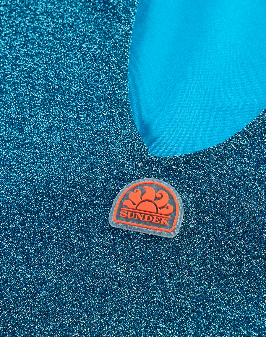 Sparkling thanks to the lurex, to show off on the shore or on a day at the pool.