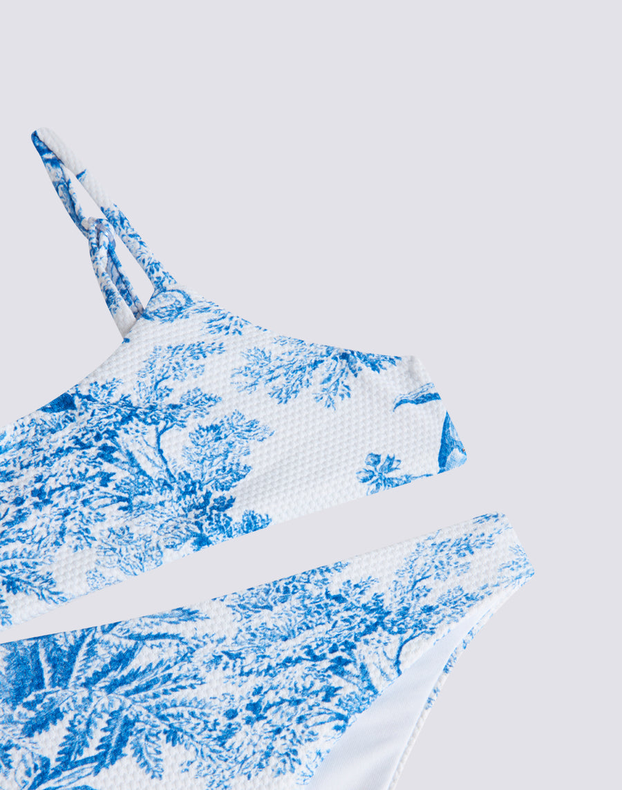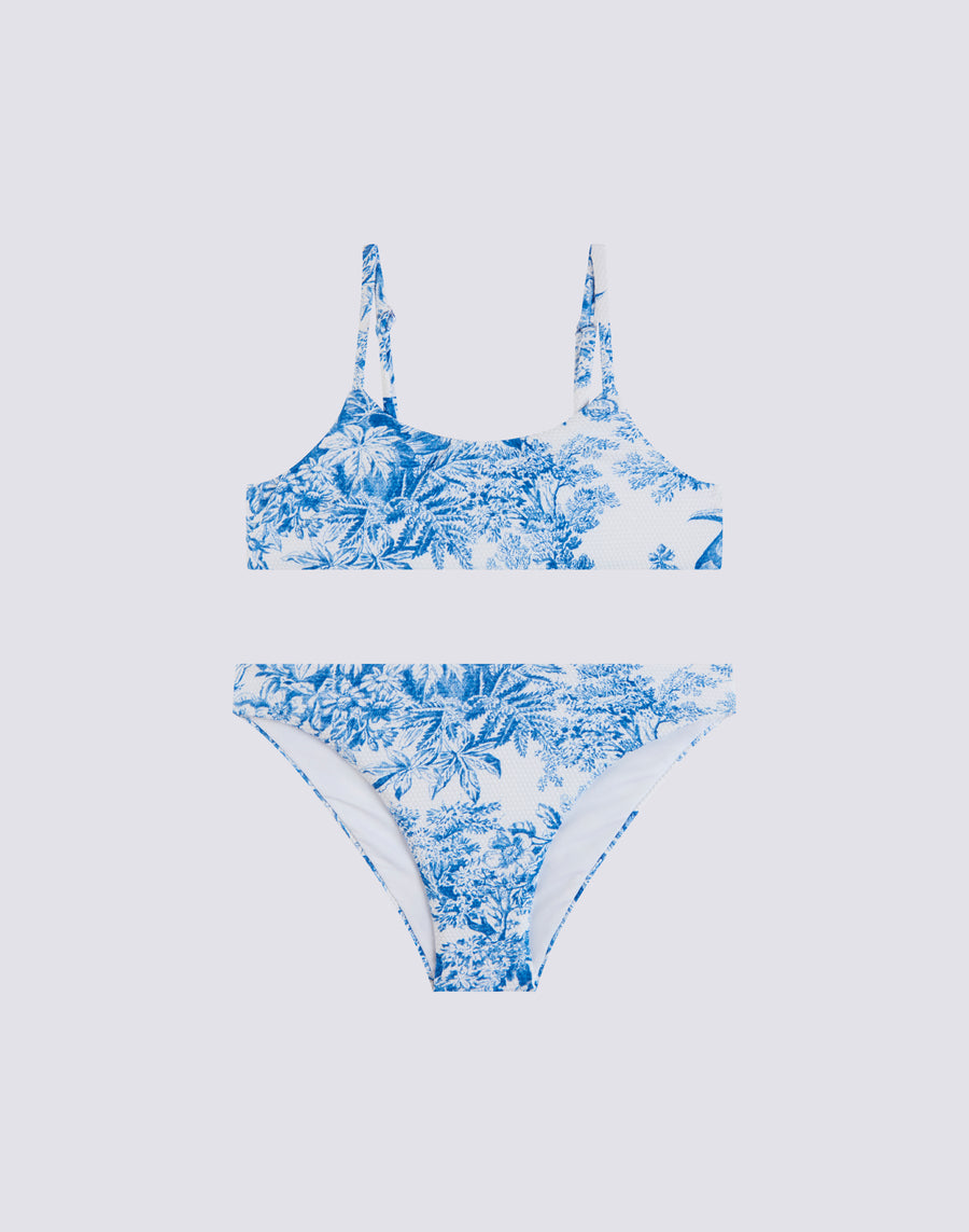 Bikini with delicate Toile de Jouy pattern, wear it coordinated with your mother's model for matchy matchy summer looks.
