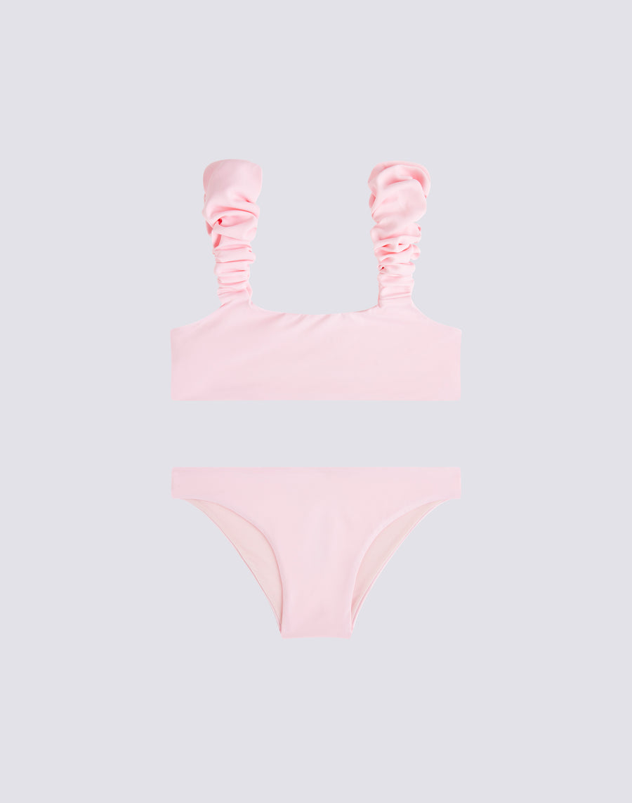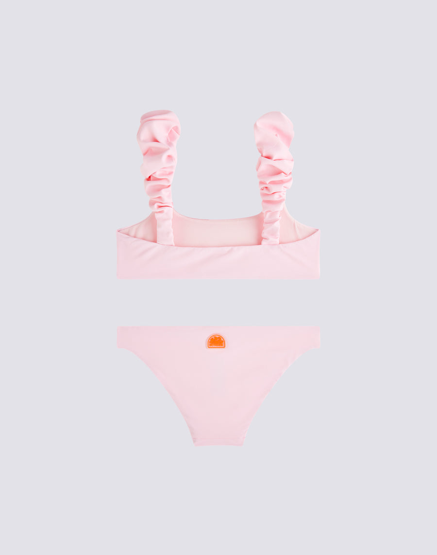 Elegant bikini consisting of a top with ruffles and fixed bottoms. For little girls who don't want to go unnoticed.