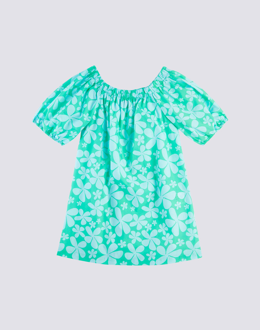 OFF SHOULDER DRESS WITH ROLLING FLOWER PRINT