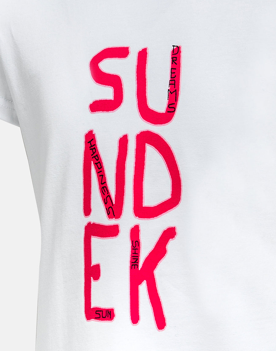 A versatile summer staple: as practical and comfortable as a T-shirt, it is perfect for layering over a swimsuit to create a super sporty style, embellished with fun contrasting Sundek lettering on the front.