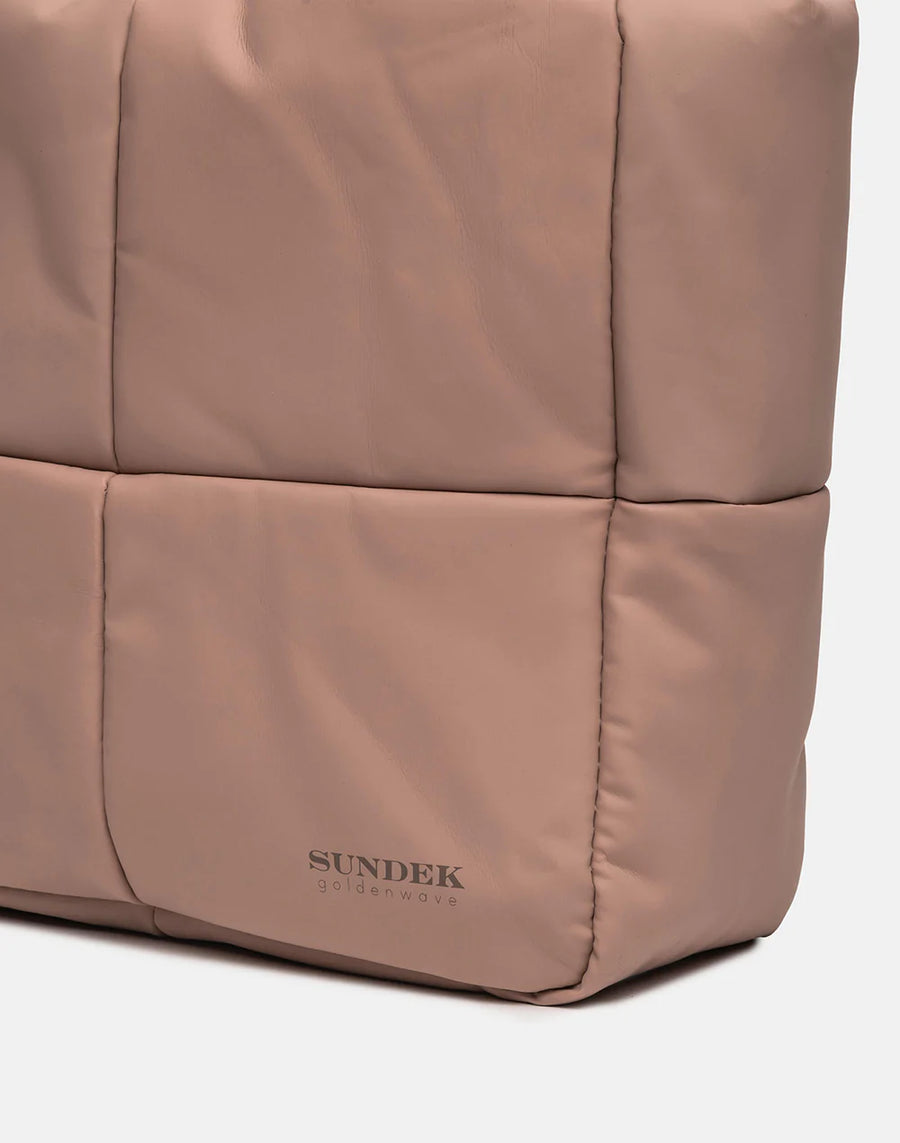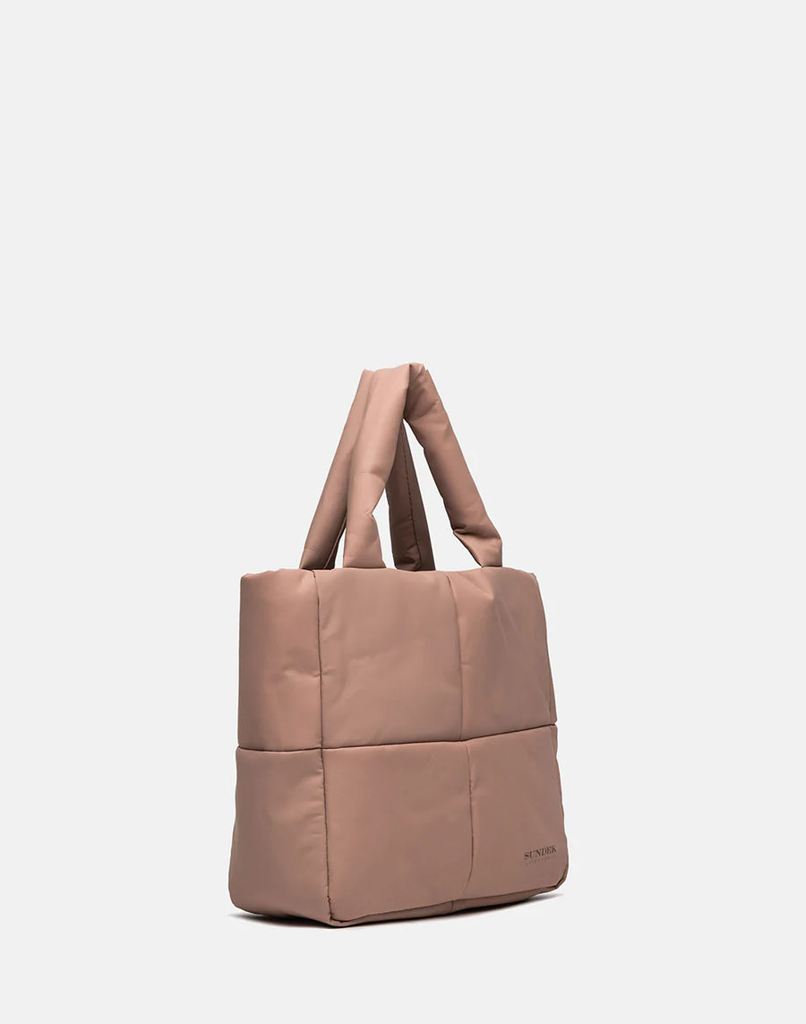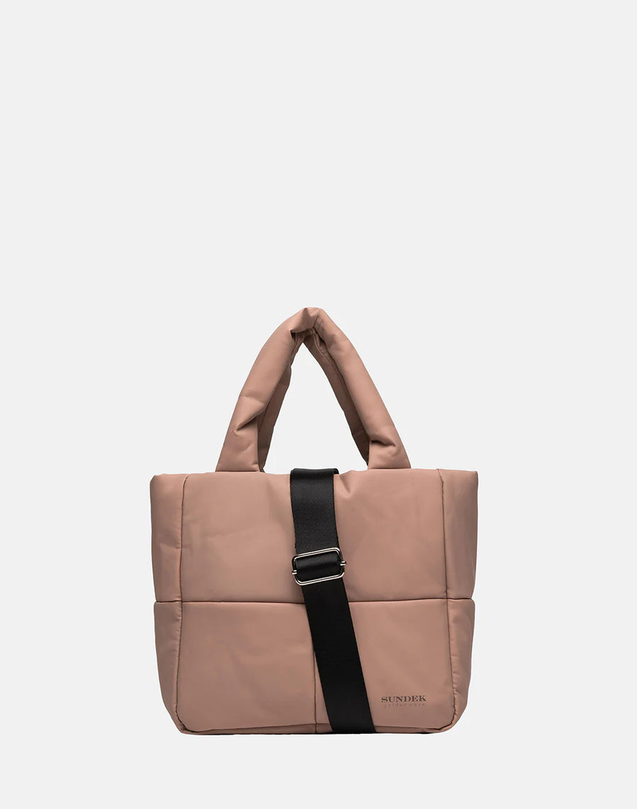 Quilted effect regular shopping bag. The open design features two comfortable handles and a tone-on-tone printed logo. Detachable crossbody strap