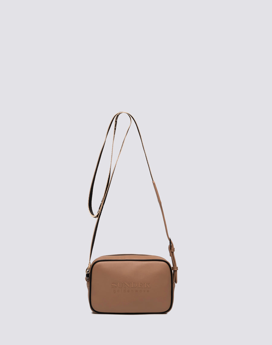 Your seasonal wardrobe can't be without a versatile and characterful camera bag, in perfect Sundek style. Perfect if you are always on the move and want to carry your essentials with style and practicality. In imitation leather with Sundek Goldenwave writing on the front. Measurements 21X14X5,5 cm.