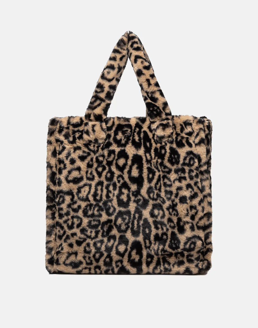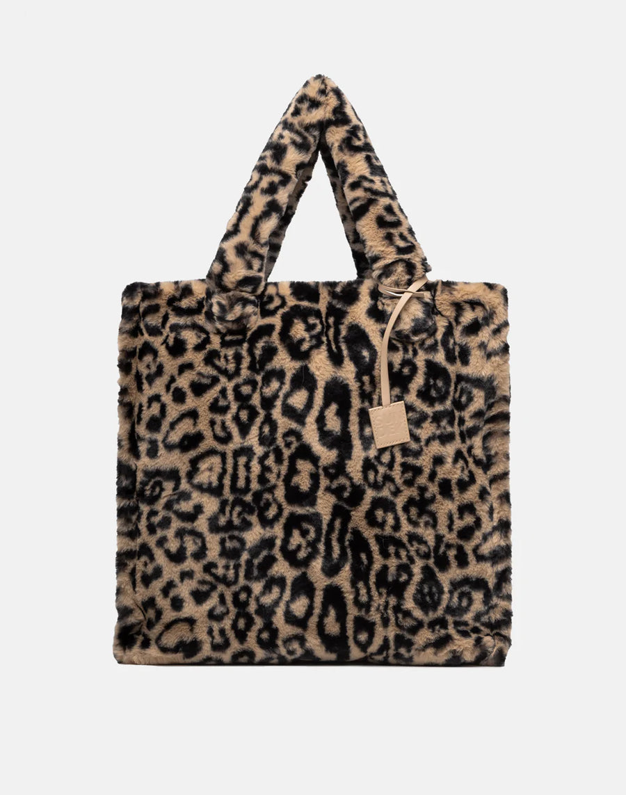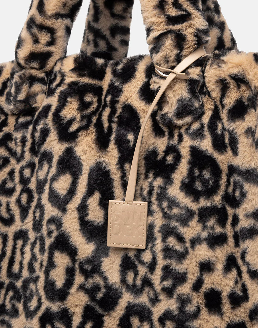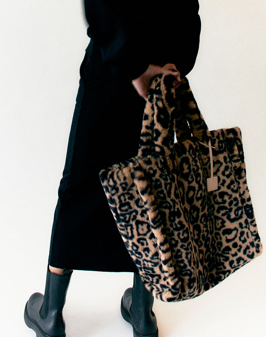 Large and spacious, this leopard print faux fur tote bag will become your must-have shopping bag this season.