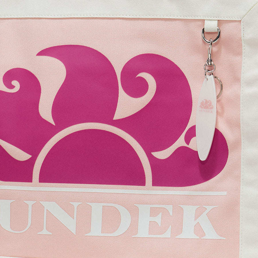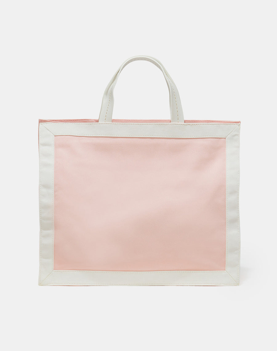 Canvas beach handbag with a printed logo. Large and spacious with an inside pocket and zip. Iconic surfboard charm