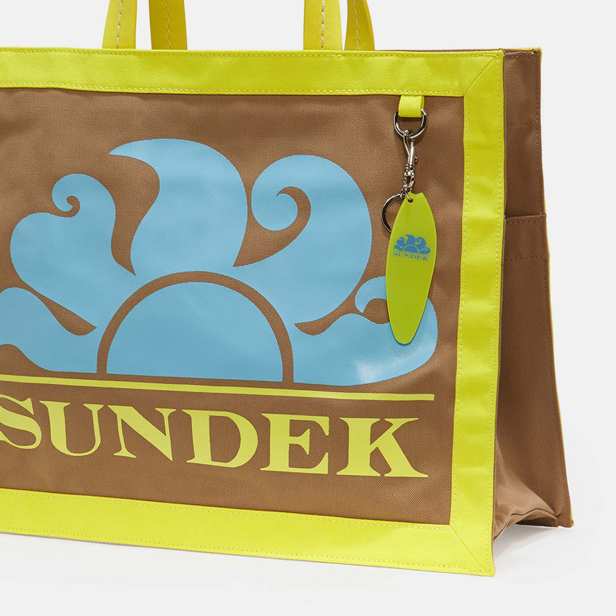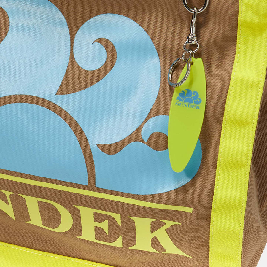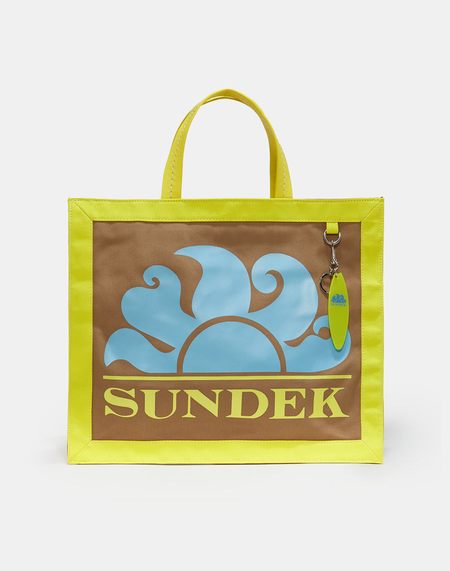 Canvas beach handbag with a printed logo. Large and spacious with an inside pocket and zip. Iconic surfboard charm