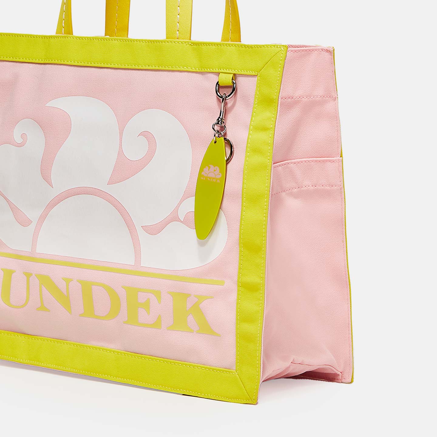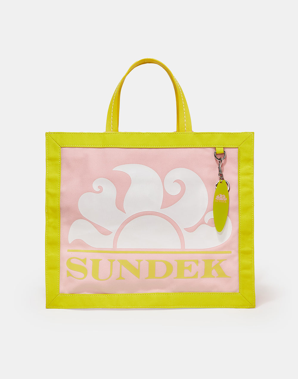 Canvas beach handbag with a printed logo. Large and spacious with an inside pocket and zip. Iconic surfboard charm
