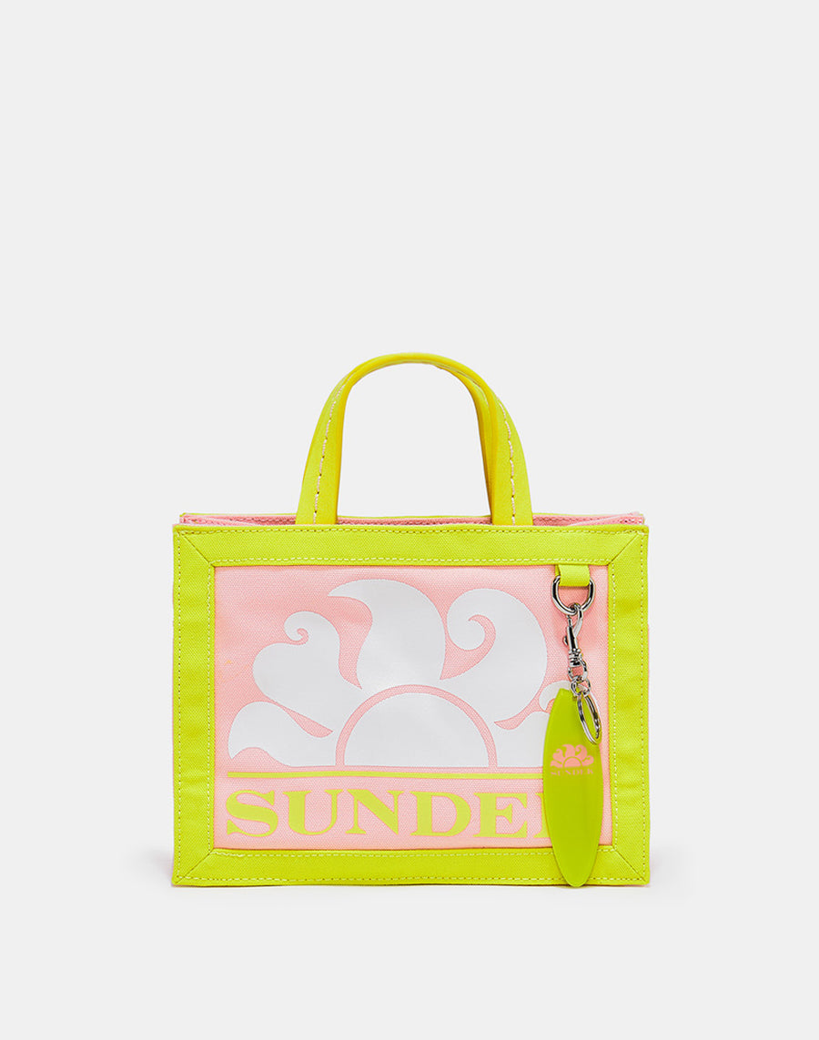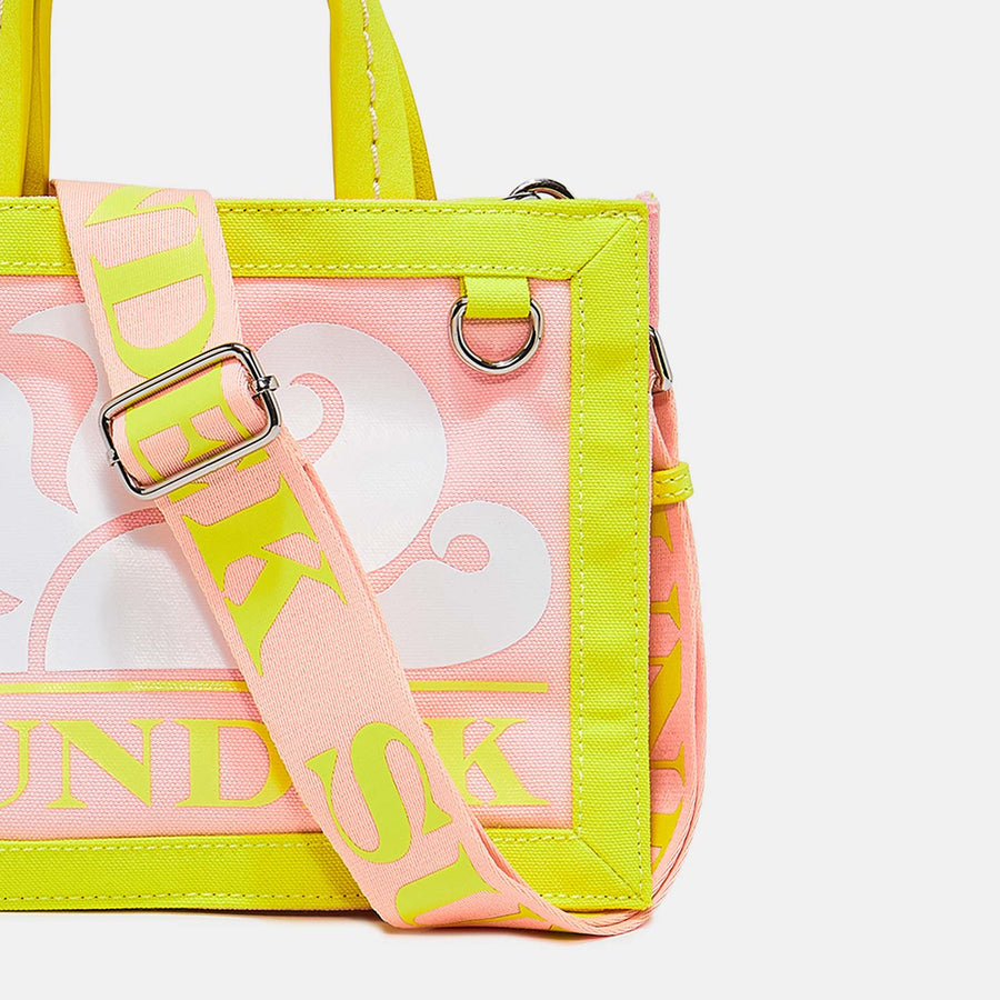 Small bag designed to carry by hand or across the body. Made from canvas with a printed logo and detachable crossbody strap. Iconic surfboard charm inspired by the history of Sundek