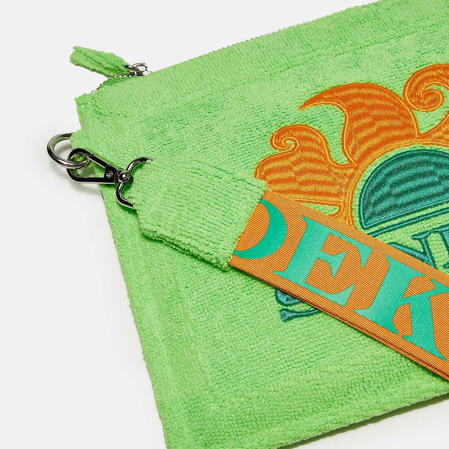 Towelling clutch bag with an embroidered Sundek logo. Perfect as a toiletry bag or a clutch bag. Detachable strap with the Sundek logo.