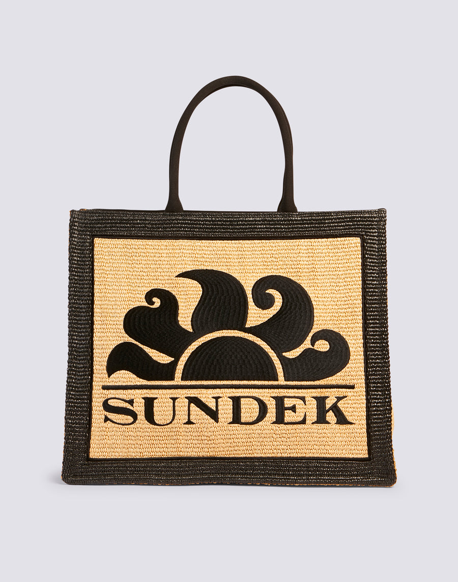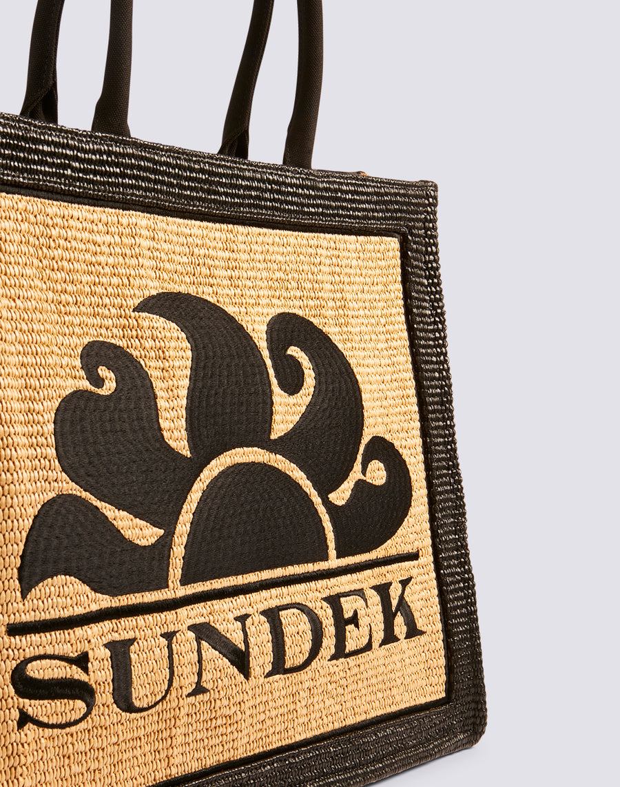 RAFFIA SHOPPING BAG WITH EMBROIDERED LOGO