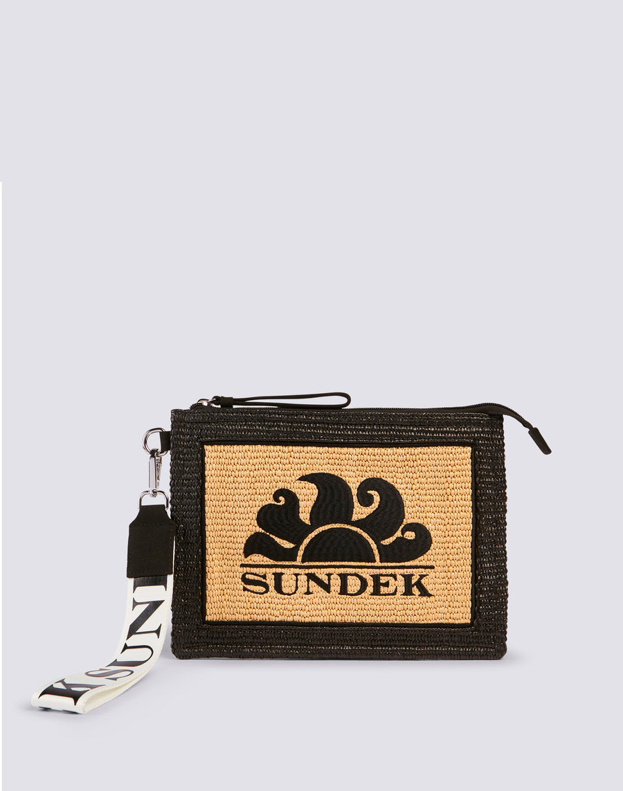 Chic, practical and elegant, this raffia clutch with embroidered Sundek logo and hand loop. To always carry with you for your essentials.