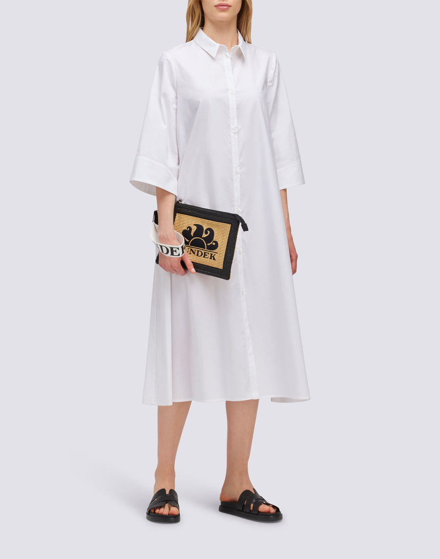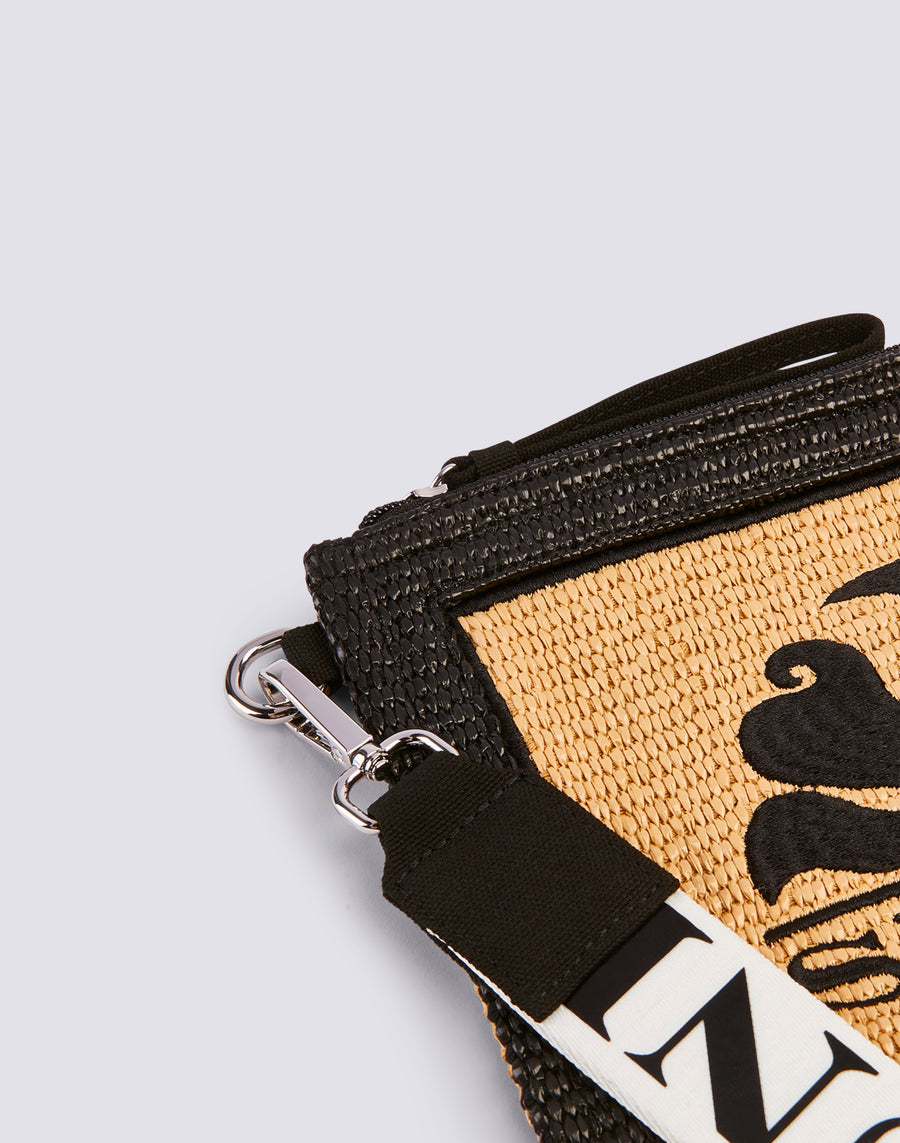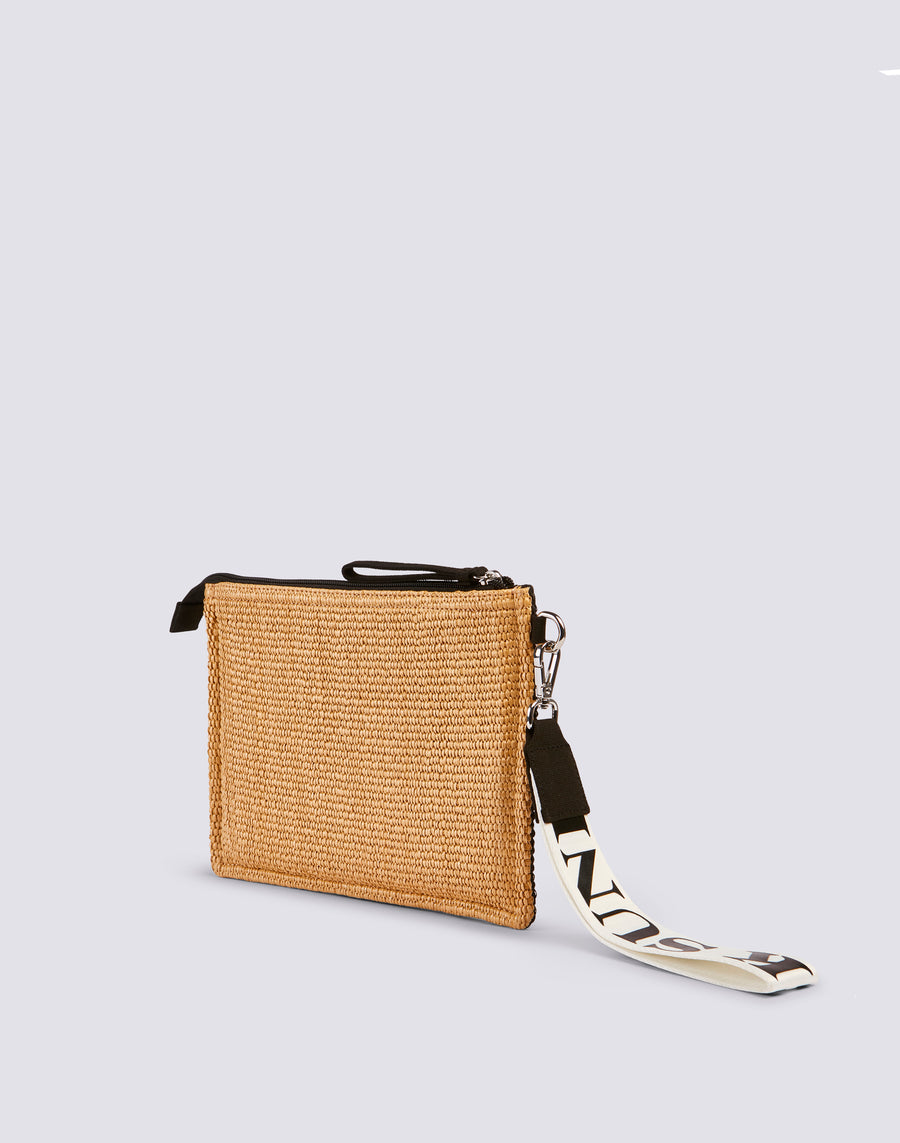 RAFFIA CLUTCH WITH EMBROIDERED LOGO