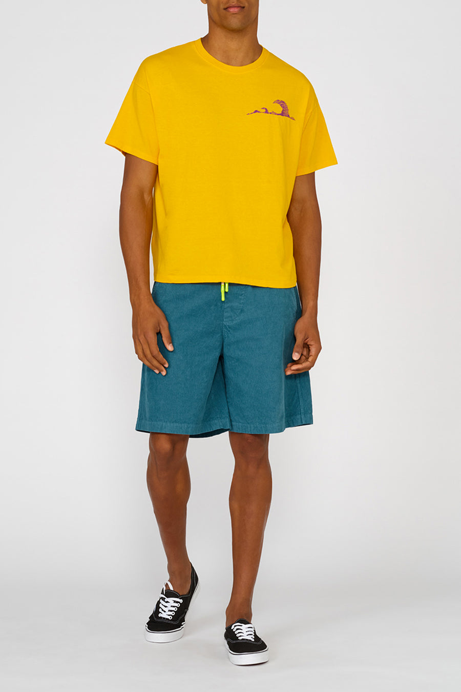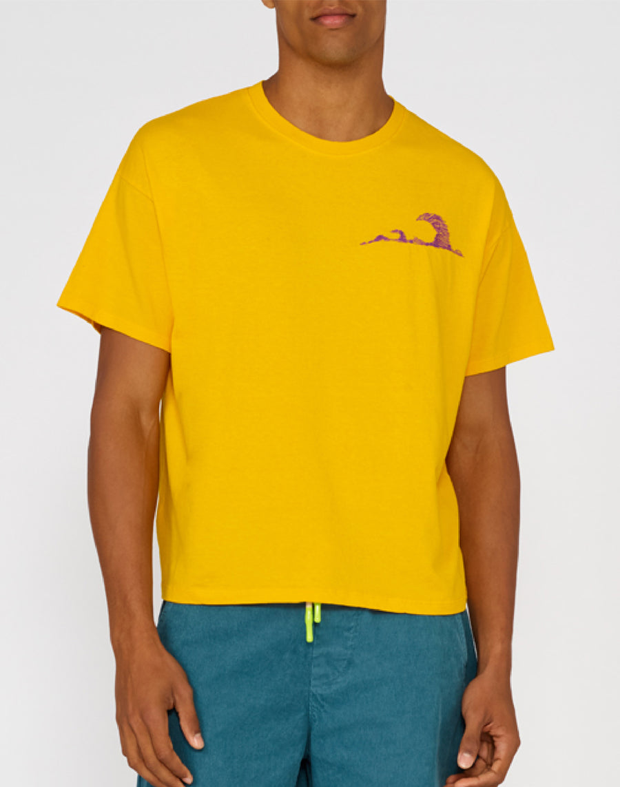 A wave embroidery to take summer with you everywhere, on the road or in your everyday life. The men's T-shirt made of soft cotton jersey has a boxy, short, but loose and generous fit, perfect for countless combinations.