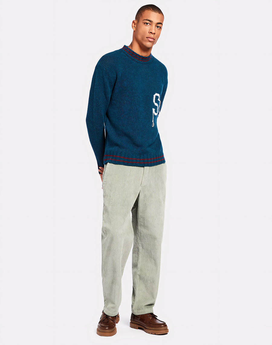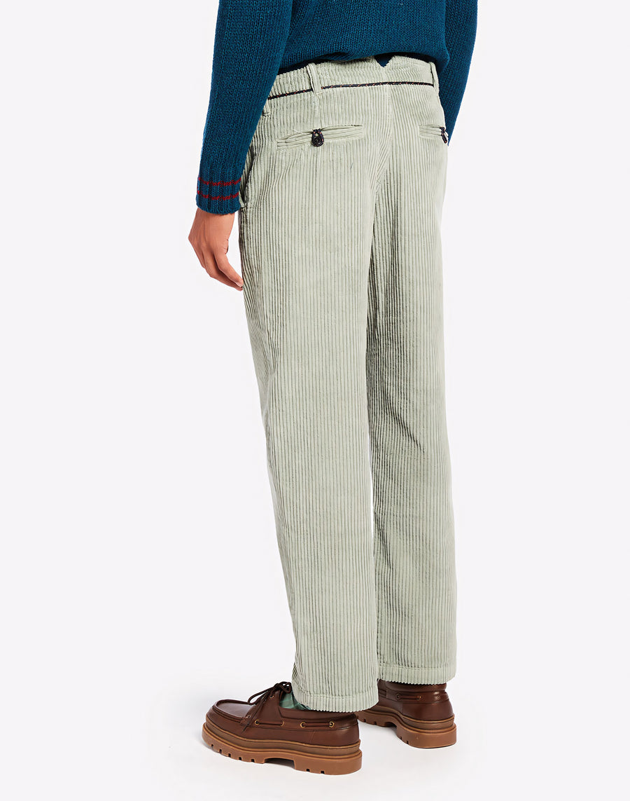 Straight cut oversized cropped trousers in overdyed corduroy with rope details