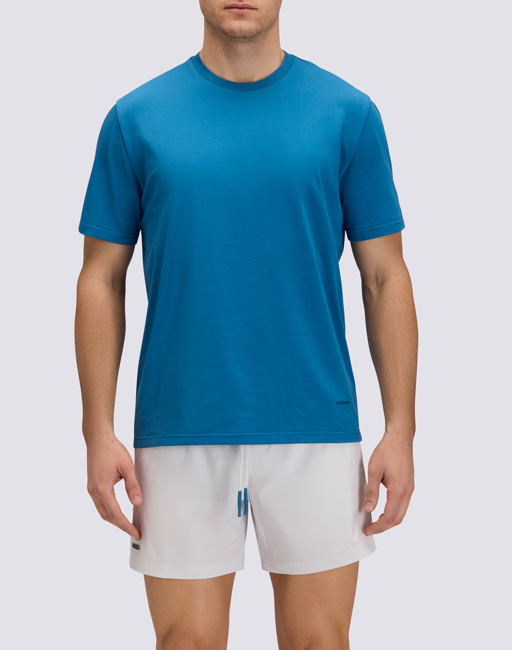 The Sundek men's crew neck T-shirt in technical jersey (64% cotton, 31% polyester, 5% elastane) is the ideal garment: soft, durable, and just the right amount of stretch. Solid color, regular fit, ready for any occasion.