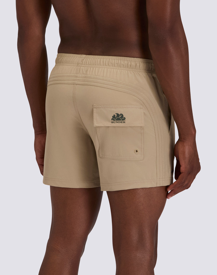 GOLDENWAVE MEN'S SHORT SWIMSUIT WITH ELASTIC WAIST, SOLID COLOR, 4WAY STRETCH