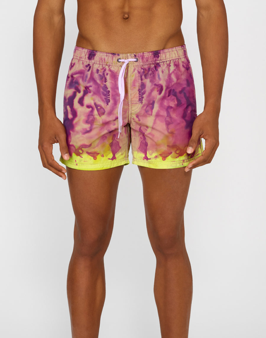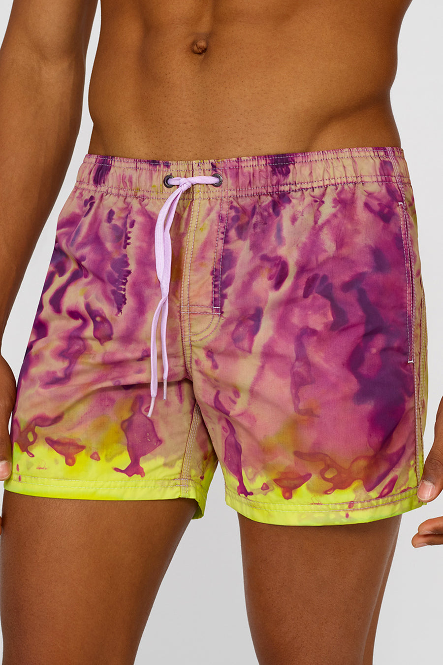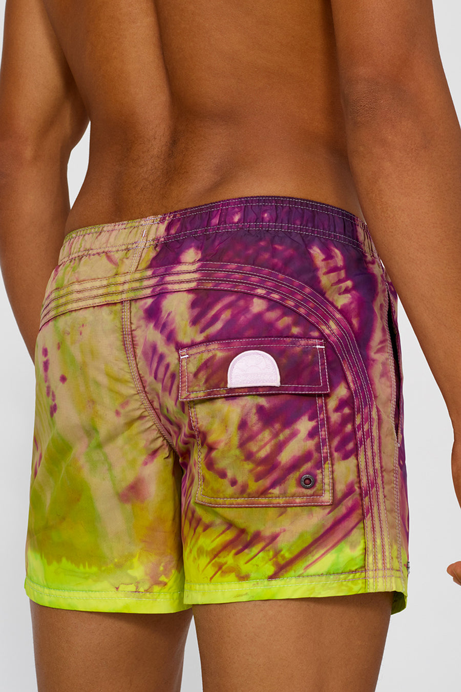 Get ready to ride the next wave with the elastic-waisted short swimming costume with special tie-dye processing, treated and dyed using artisanal techniques. The historic nylon taffeta fabric and pattern construction makes it quick-drying and super durable season after season. Low waist fit.