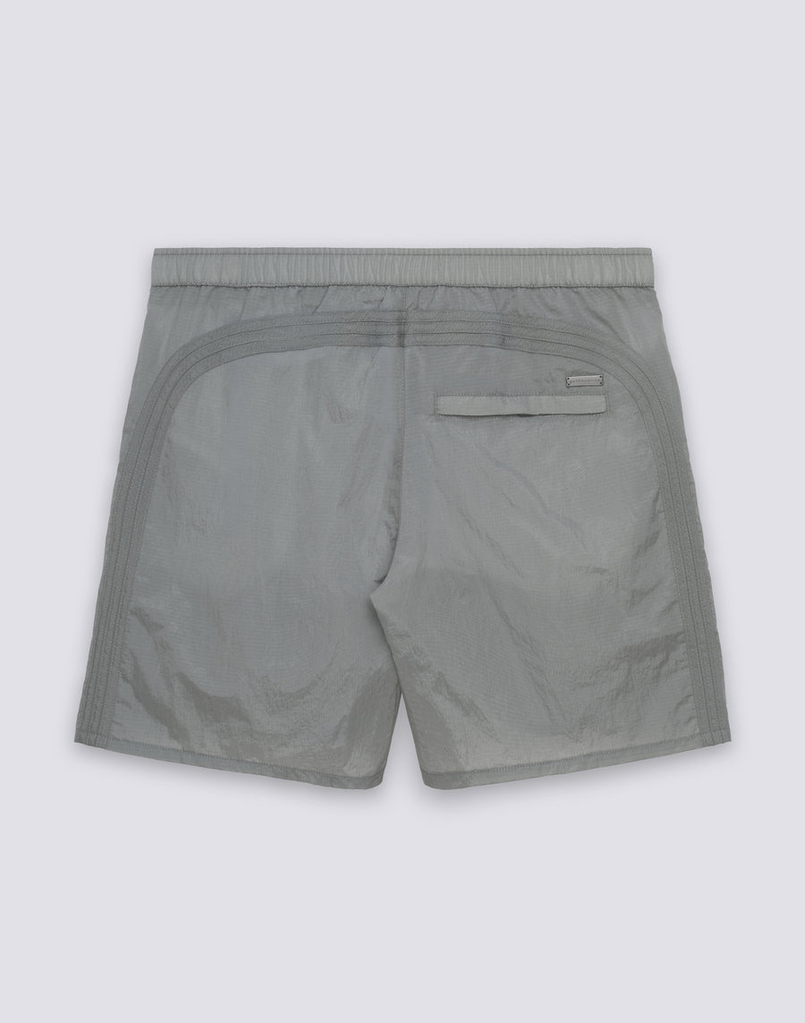 Ripstop Nylon is a technical fabric featuring a reinforced grid weave that prevents tears from spreading. This special structure, visible as small woven squares, makes the fabric extremely durable while maintaining exceptional lightness. The distinctive grid texture is not only functional but also creates a distinctive visual effect. This geometric pattern gives the swimsuit a technical and modern look.