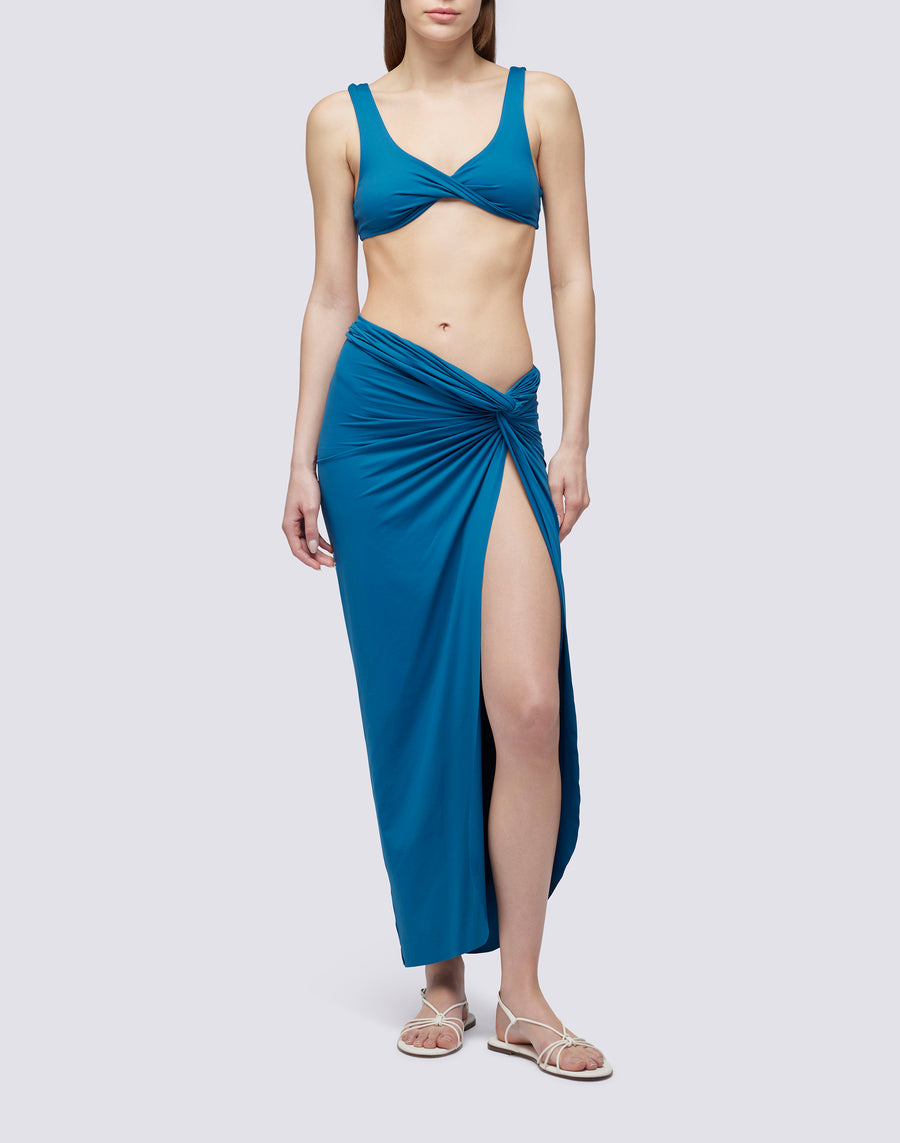 Let yourself be wrapped in our sarong skirt which can also become a comfortable beach cover-up. A versatile item to combine over a swimsuit, a top or a tank top, for a sophisticated summer look.