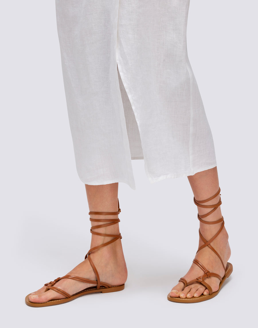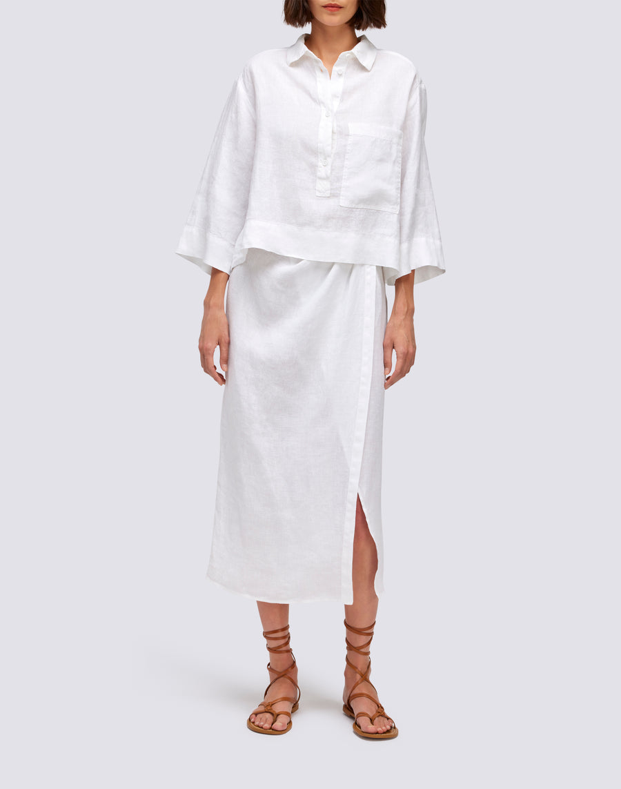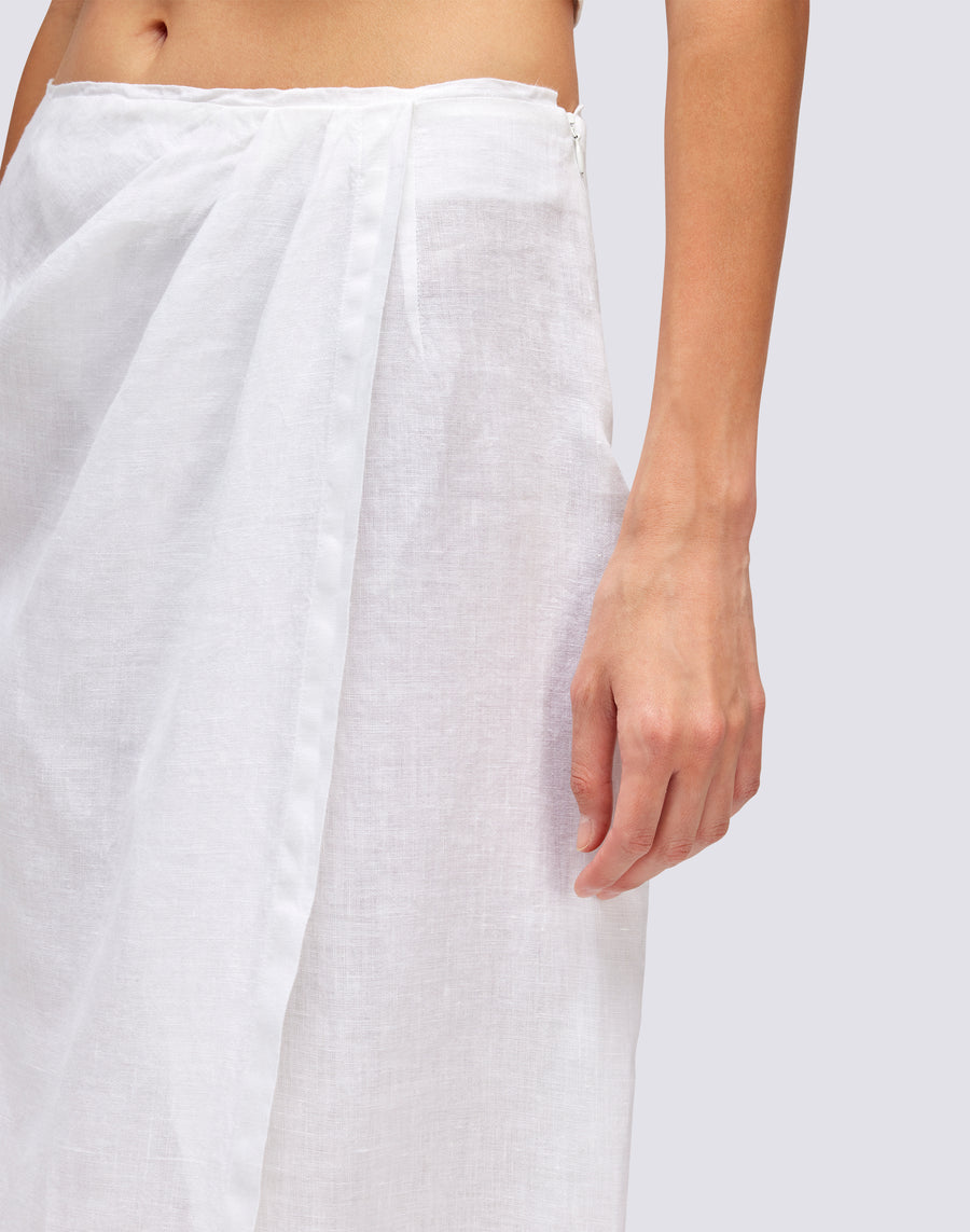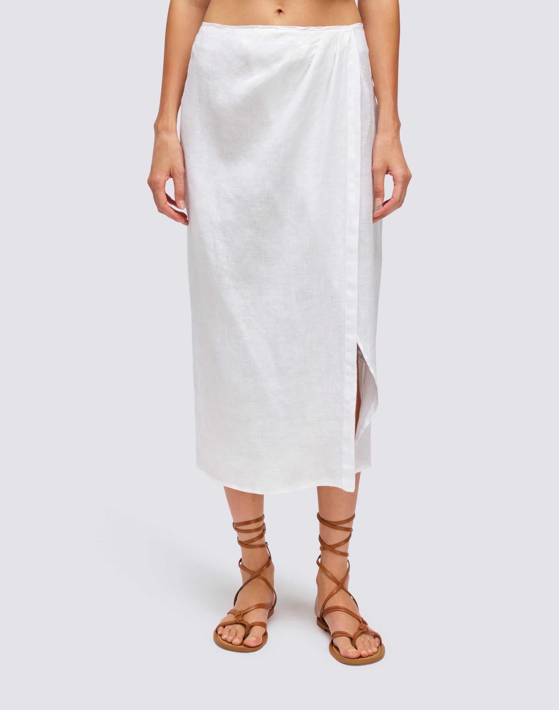 This long linen skirt is the perfect choice for a versatile and elegant style. Thanks to its pareo cut, it adapts perfectly to all beach and non-beach looks.