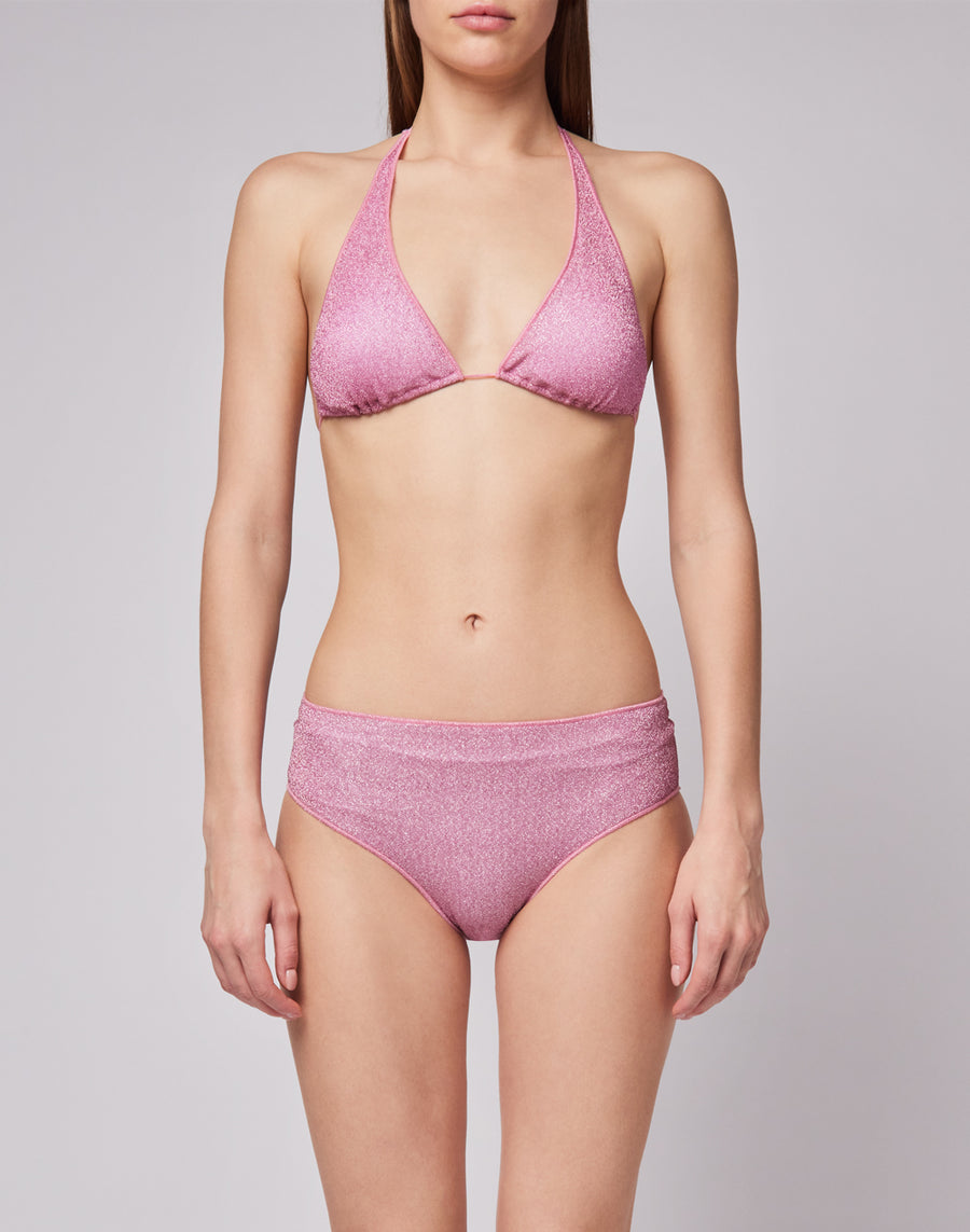 American lurex top with adjustable ties. Sparkling and glamorous, wear with its matching bottom.