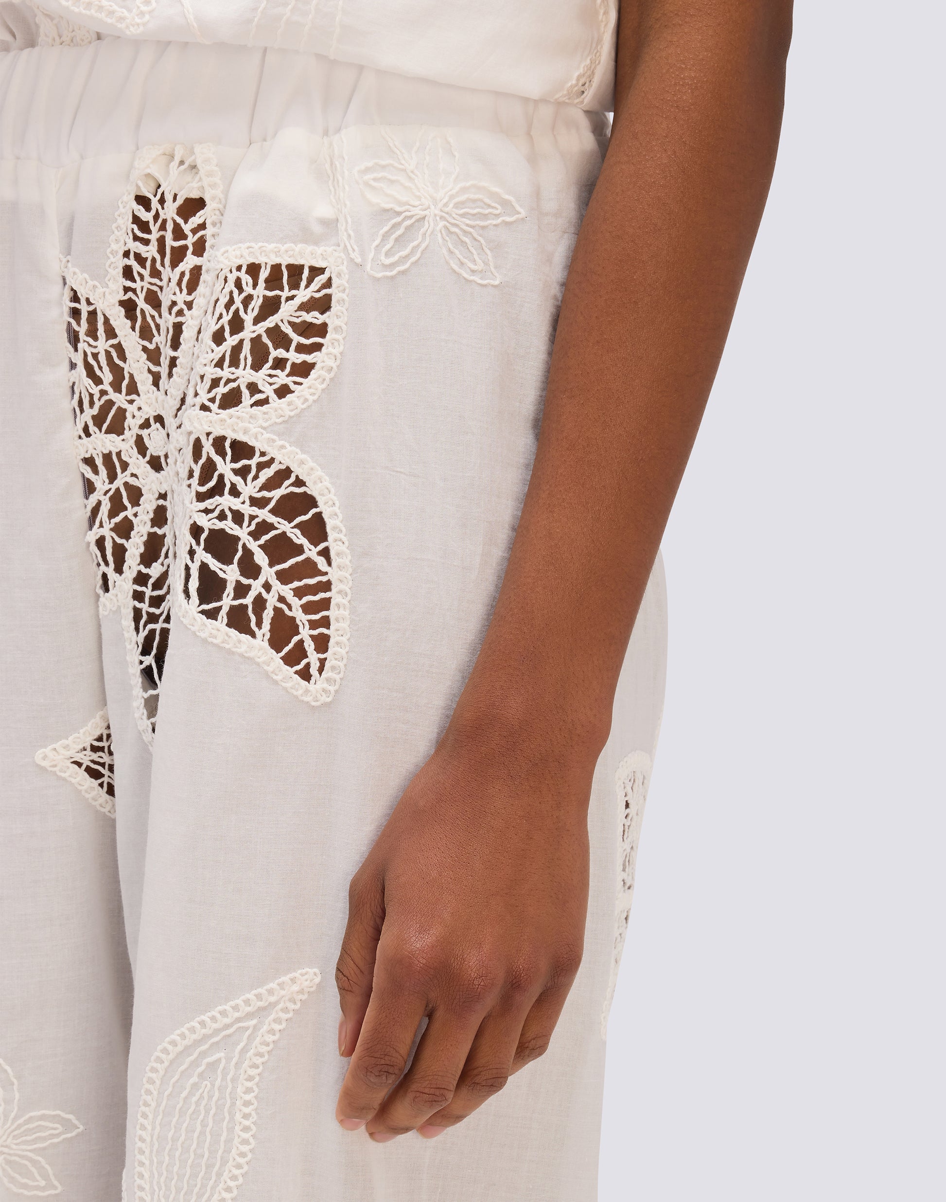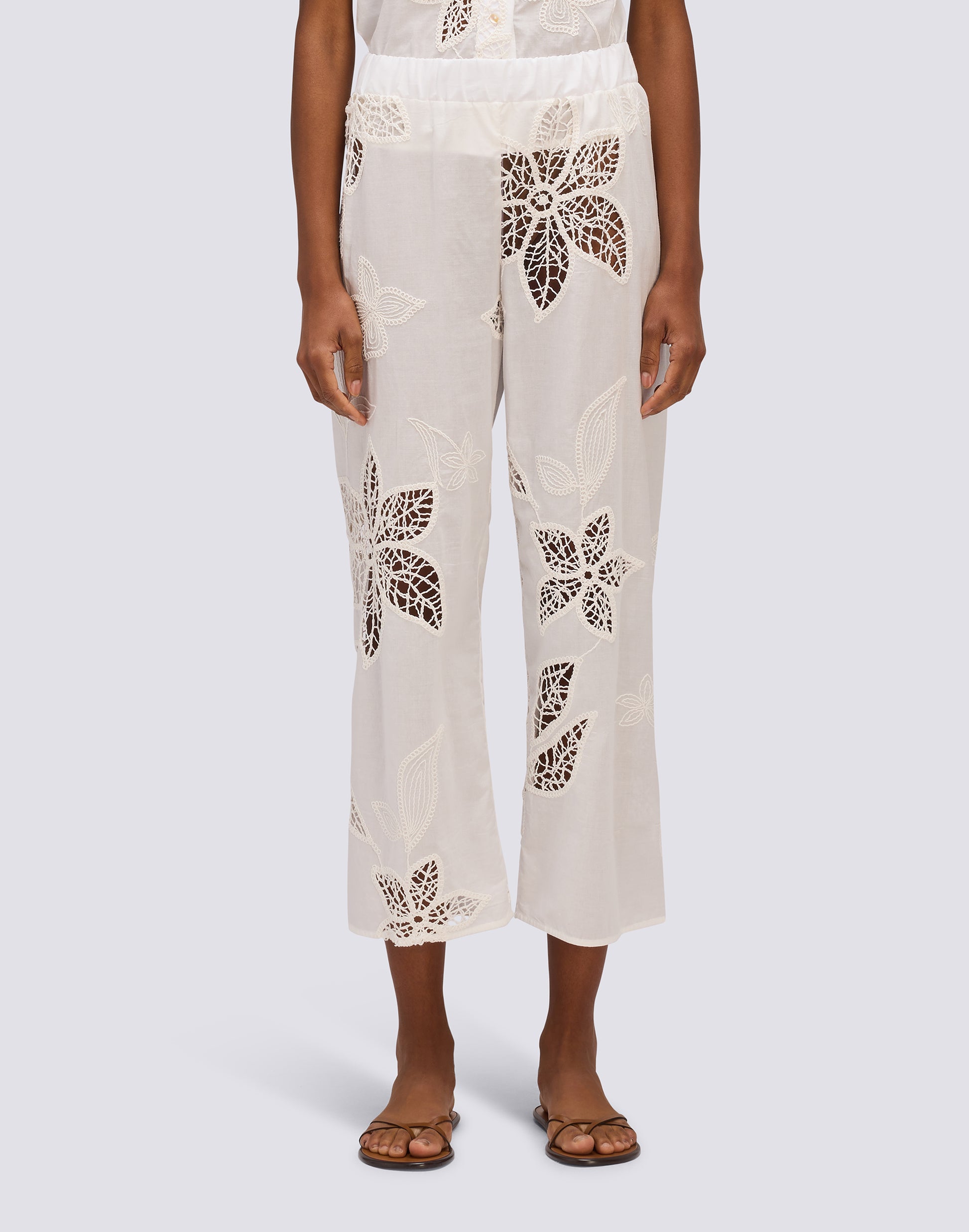 WOMEN'S LONG BRODERIE ANGLAISE TROUSERS WITH ELASTICATED WAIST
