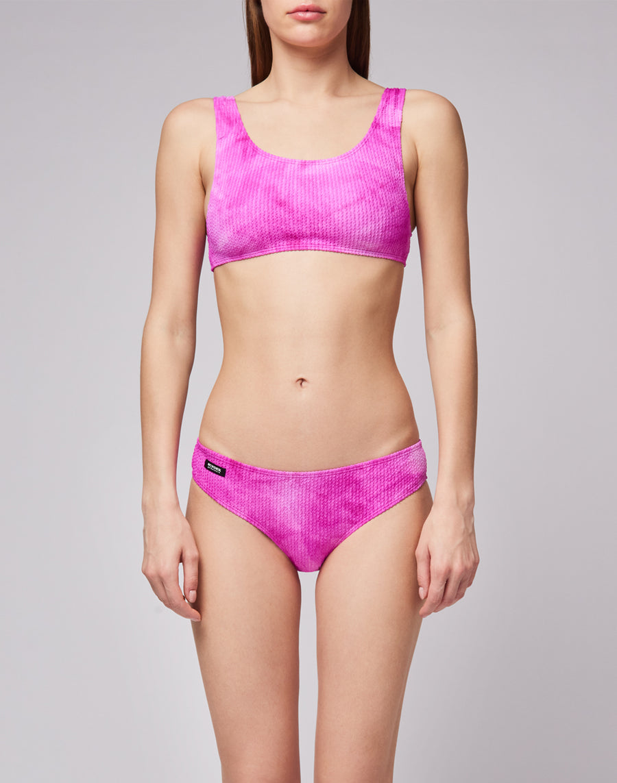 Jacquard lycra top with textured Tye Dye pattern. Sporty fit. Pair with matching bottom for an original beach outfit.