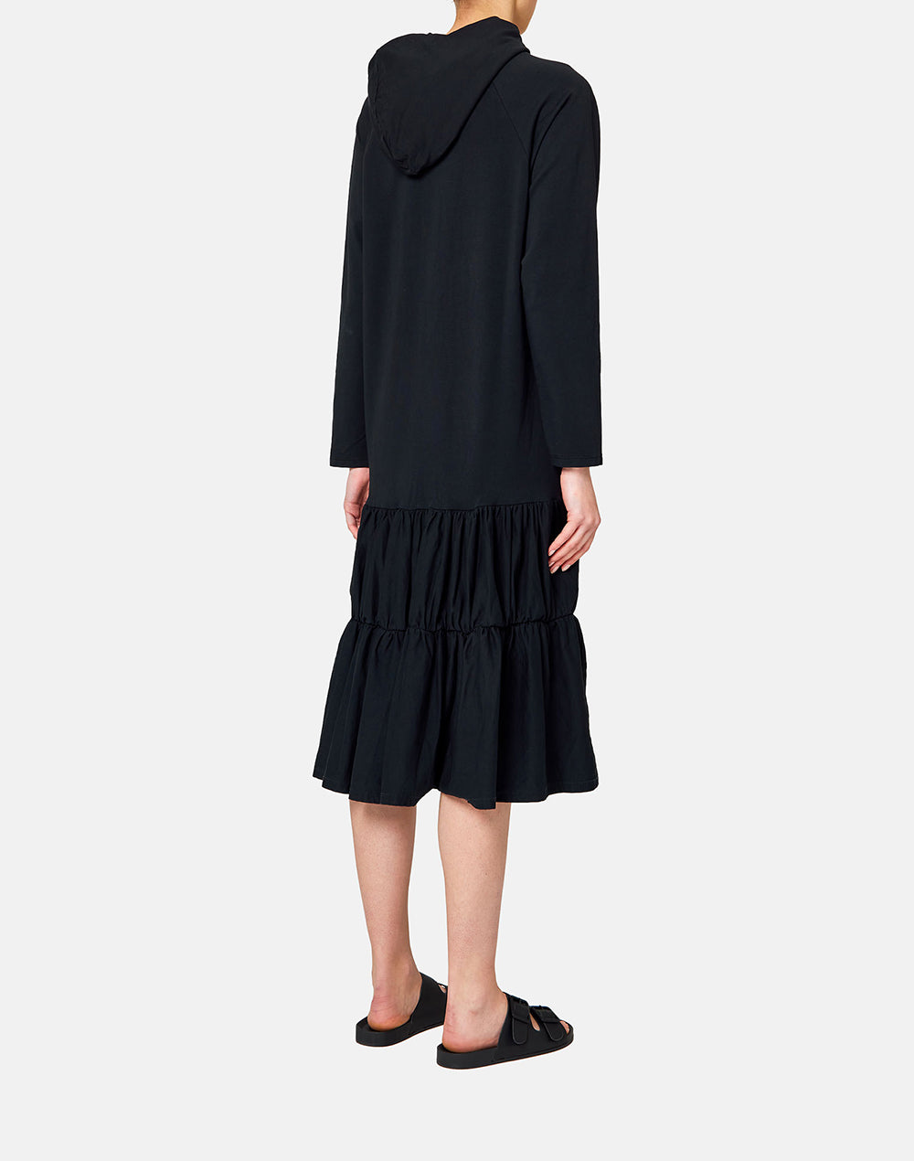 This versatile long dress is made from stretch cotton fleece for a sporty flair, finished with feminine ruffles at the hem to create an interesting contrast.
